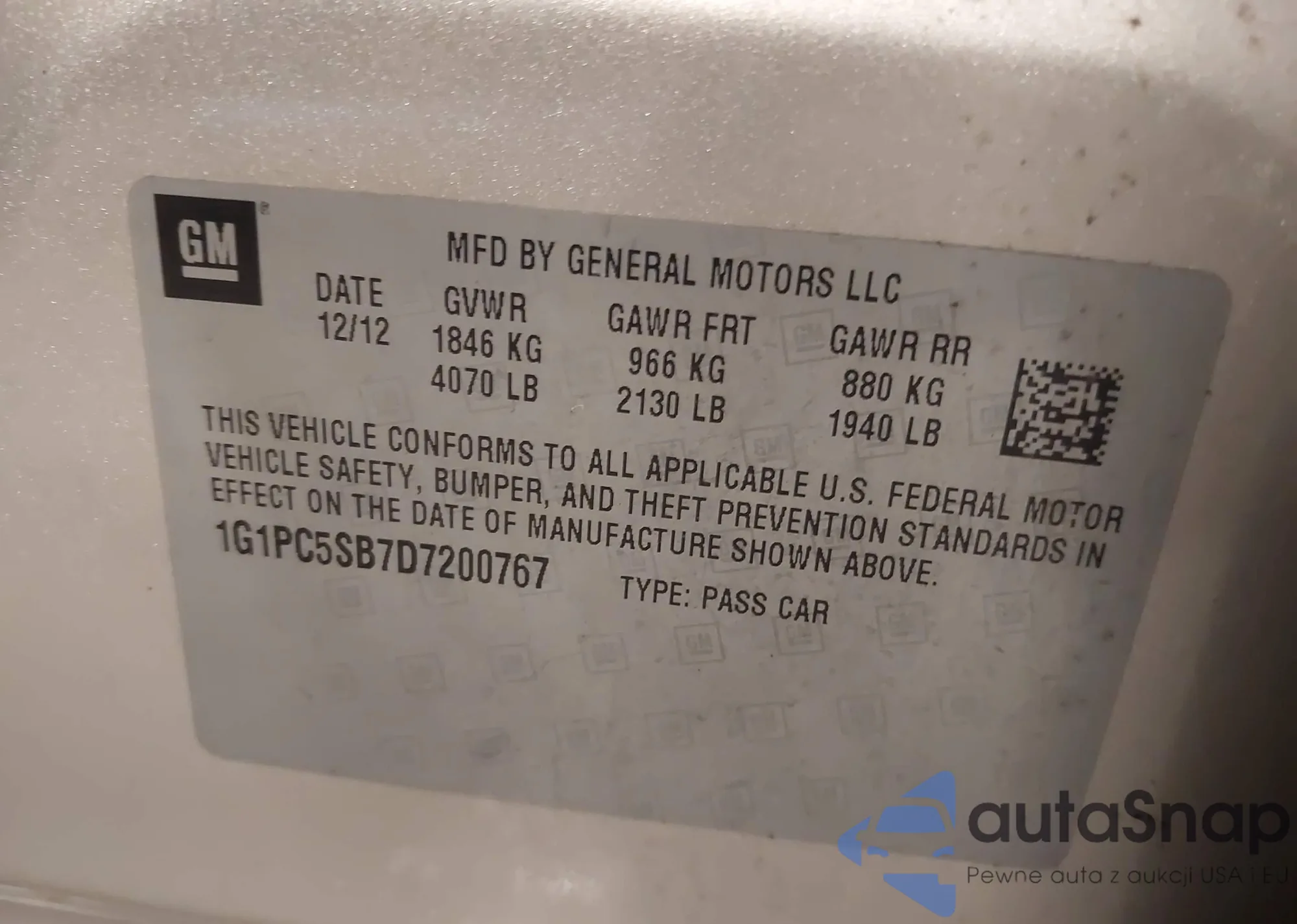 The car Chevrolet Cruze 2013 (VIN 1G1PC5SB7D7200767) has not been auctioned before. The documents are clean, and the mileage matches or is below the market average. Sold by an insurance company – we recommend purchase. Delivery to the port will take approx. 6–8 weeks.