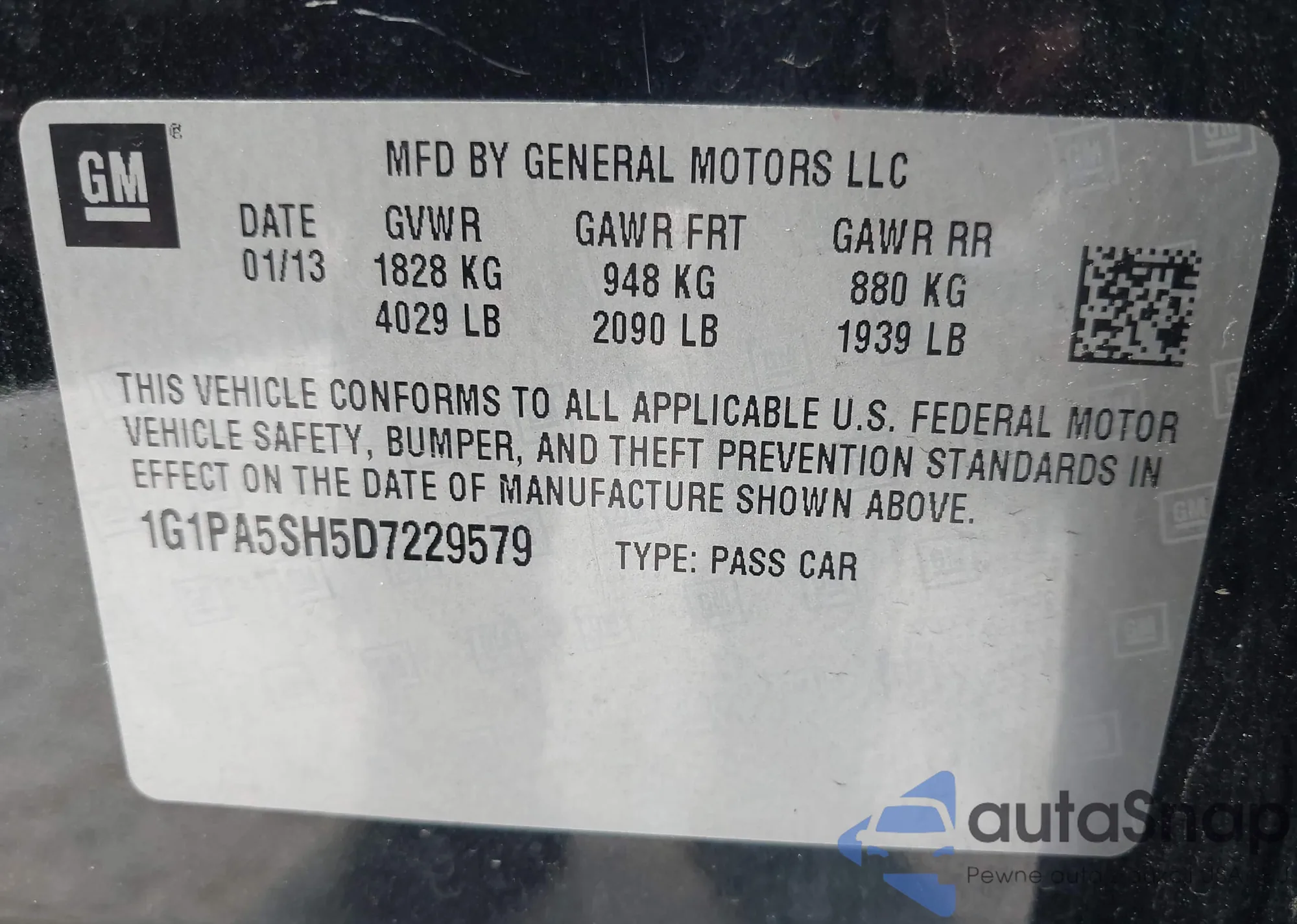 VIN: 1G1PA5SH5D7229579
