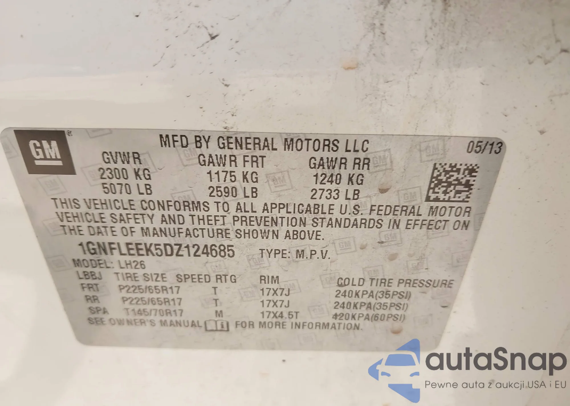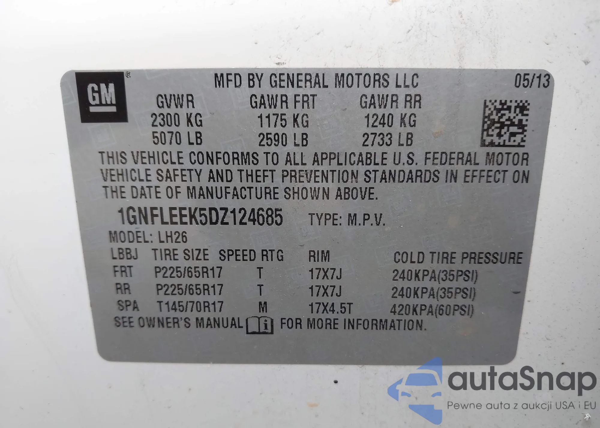 VIN: 1GNFLEEK5DZ124685