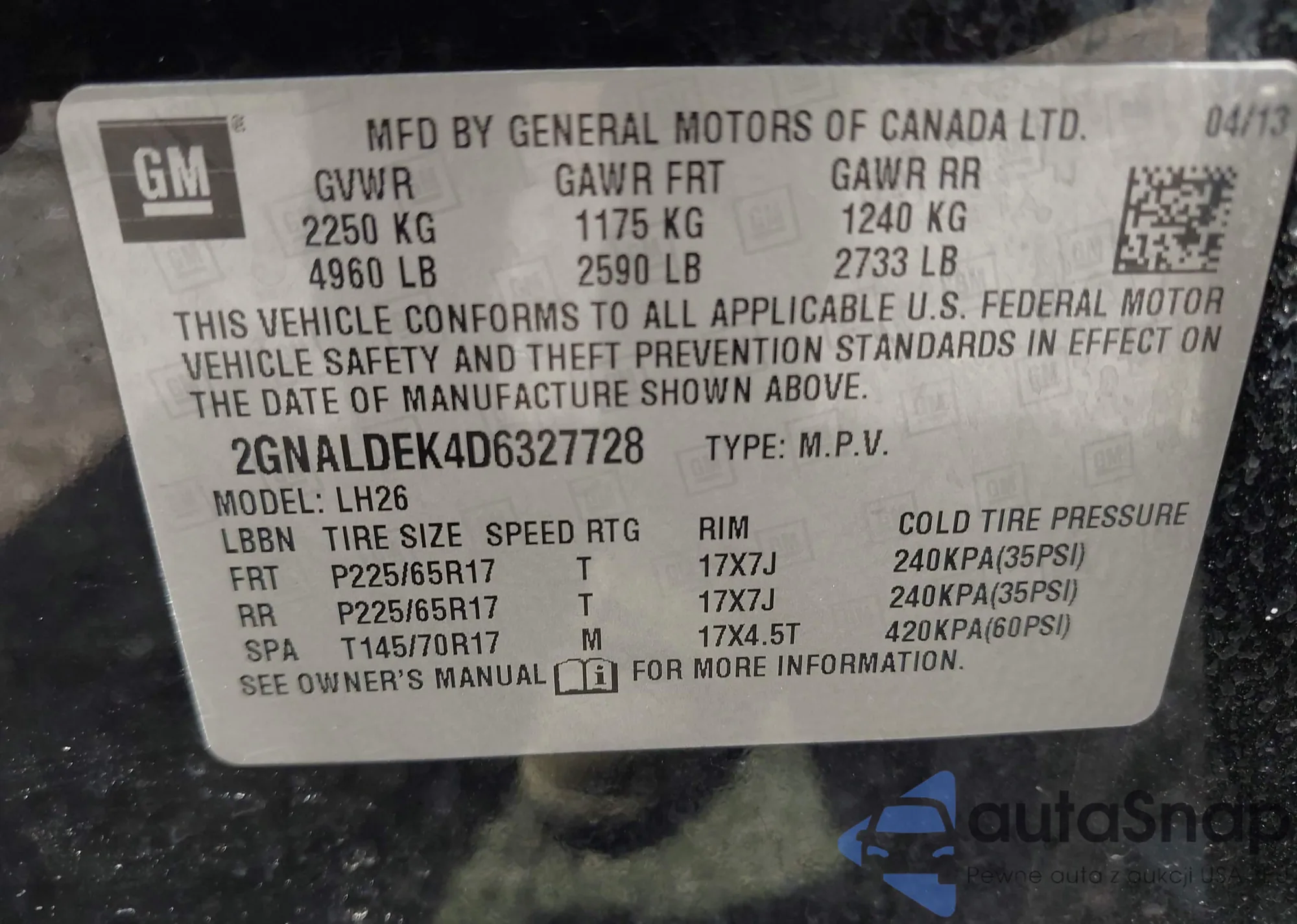 • VIN: 2GNALDEK4D6327728