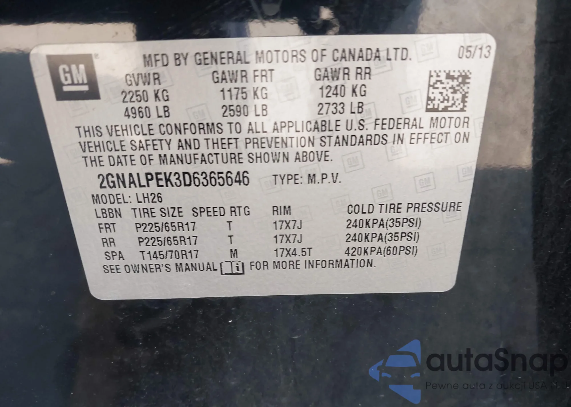 VIN: 2GNALPEK3D6365646