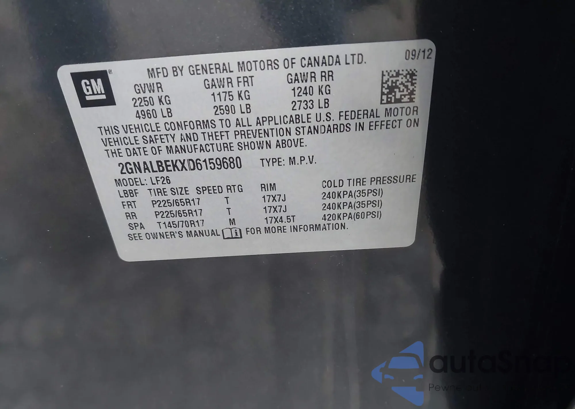 VIN: 2GNALBEKXD6159680