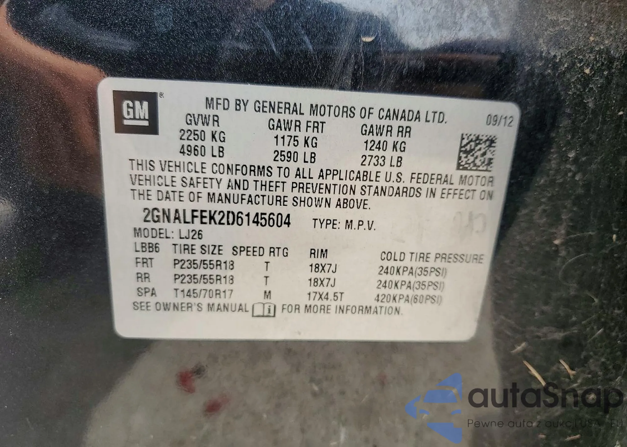 The car Chevrolet Equinox 2013 (VIN 2GNALFEK2D6145604) has not been auctioned before. The documents are clean, and the mileage matches or is below the market average. Sold by an insurance company – we recommend purchase. Delivery to the port will take approx. 6–8 weeks.