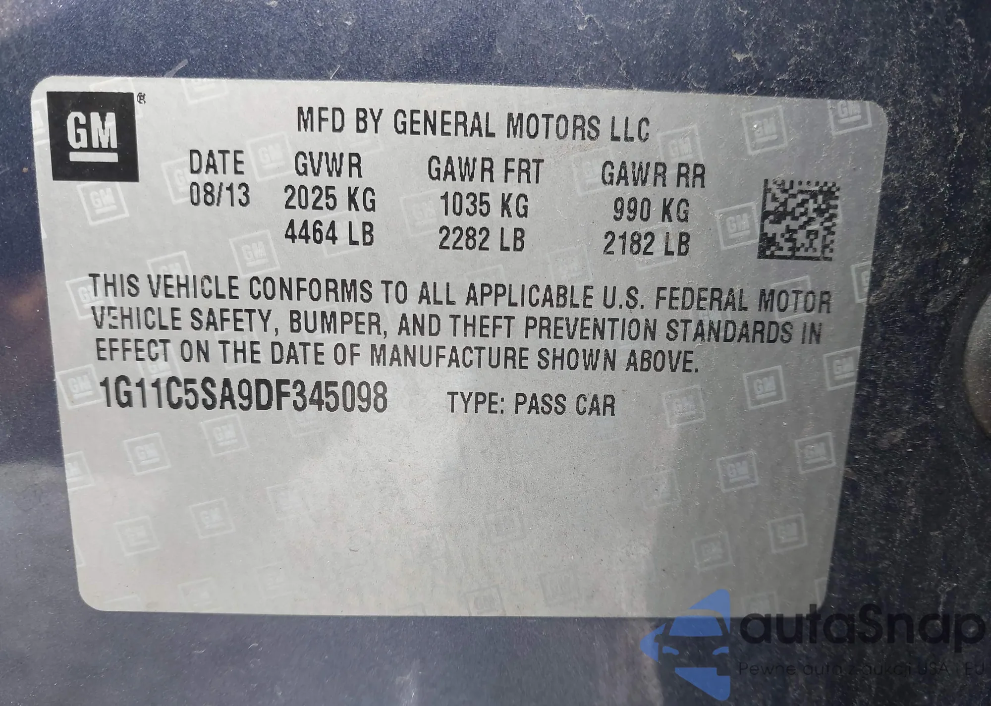 • VIN: 1G11C5SA9DF345098