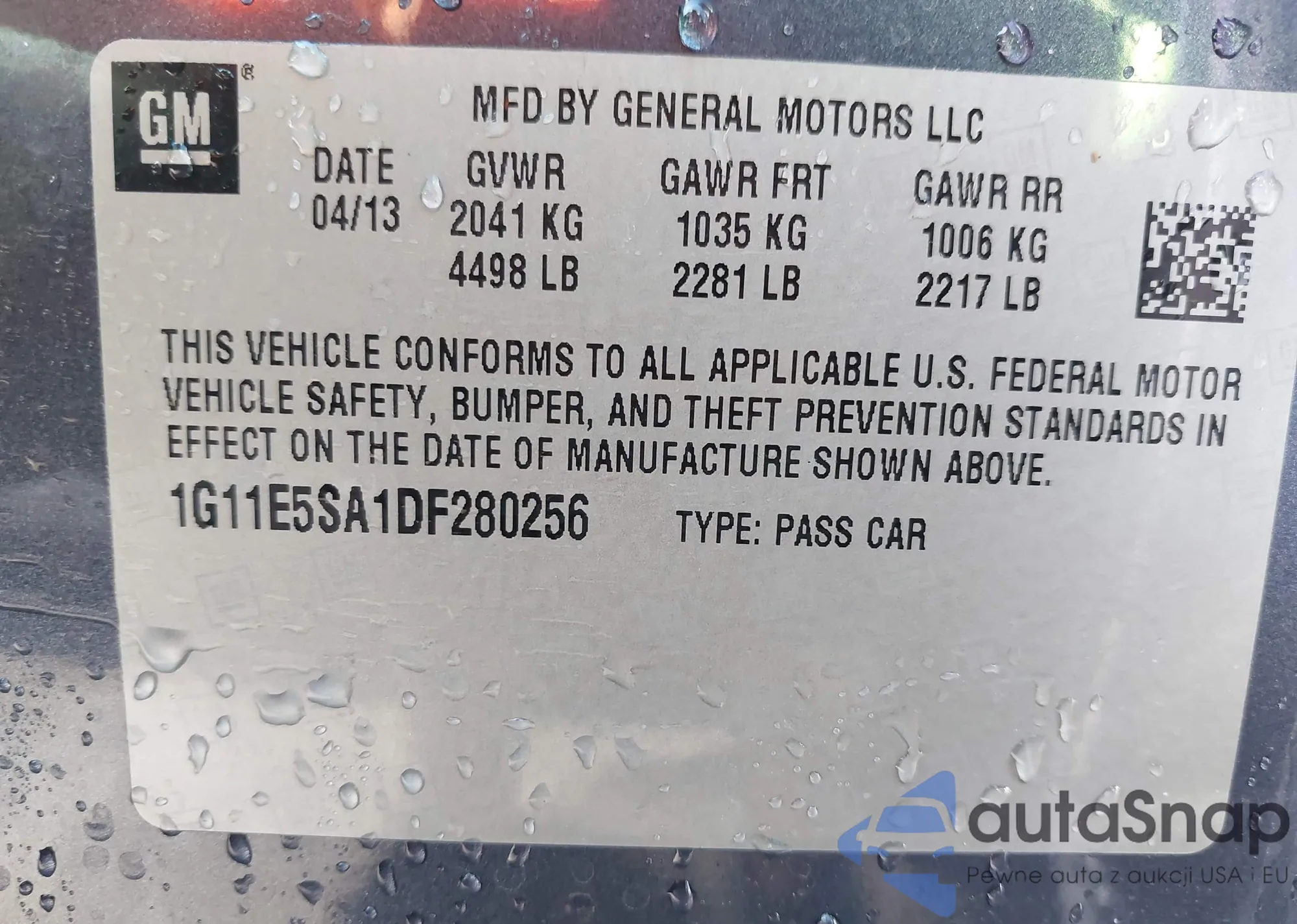 The car Chevrolet Malibu 2013 (VIN 1G11E5SA1DF280256) has not been auctioned before. The documents are clean, and the mileage matches or is below the market average. Sold by an insurance company – we recommend purchase. Delivery to the port will take approx. 6–8 weeks.