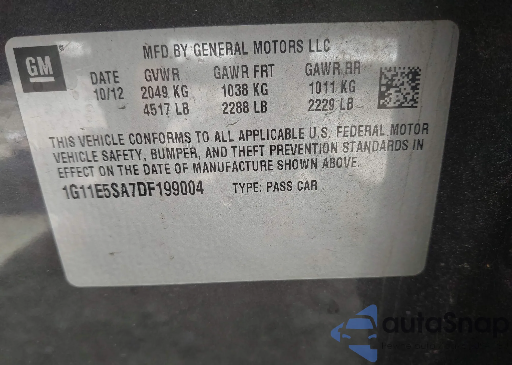 • VIN: 1G11E5SA7DF199004