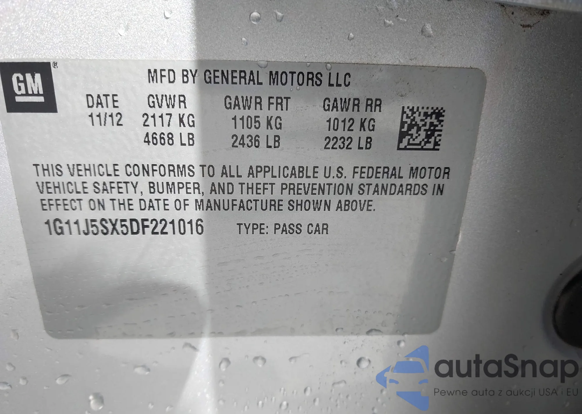 VIN: 1G11J5SX5DF221016
