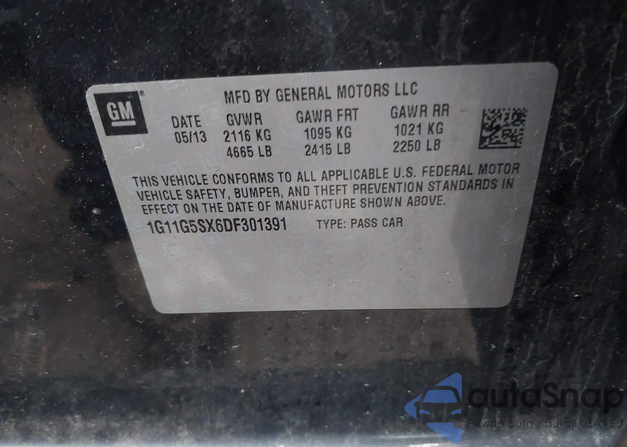 • VIN: 1G11G5SX6DF301391