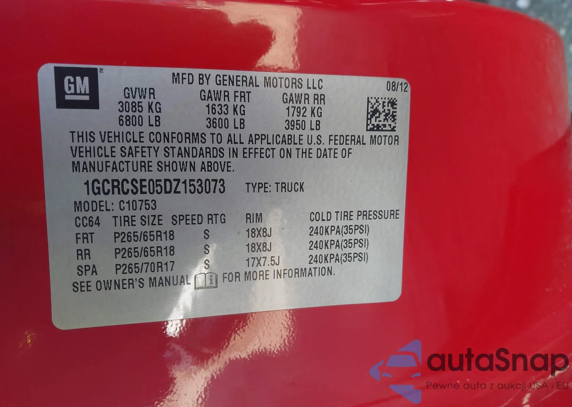 VIN: 1GCRCSE05DZ153073