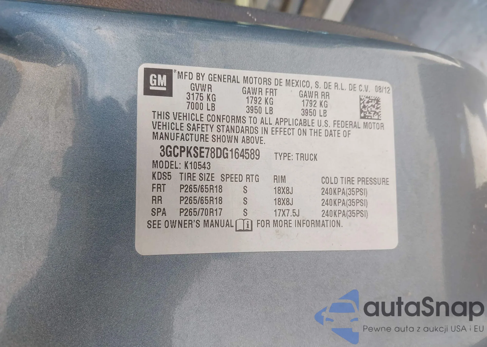 VIN: 3GCPKSE78DG164589