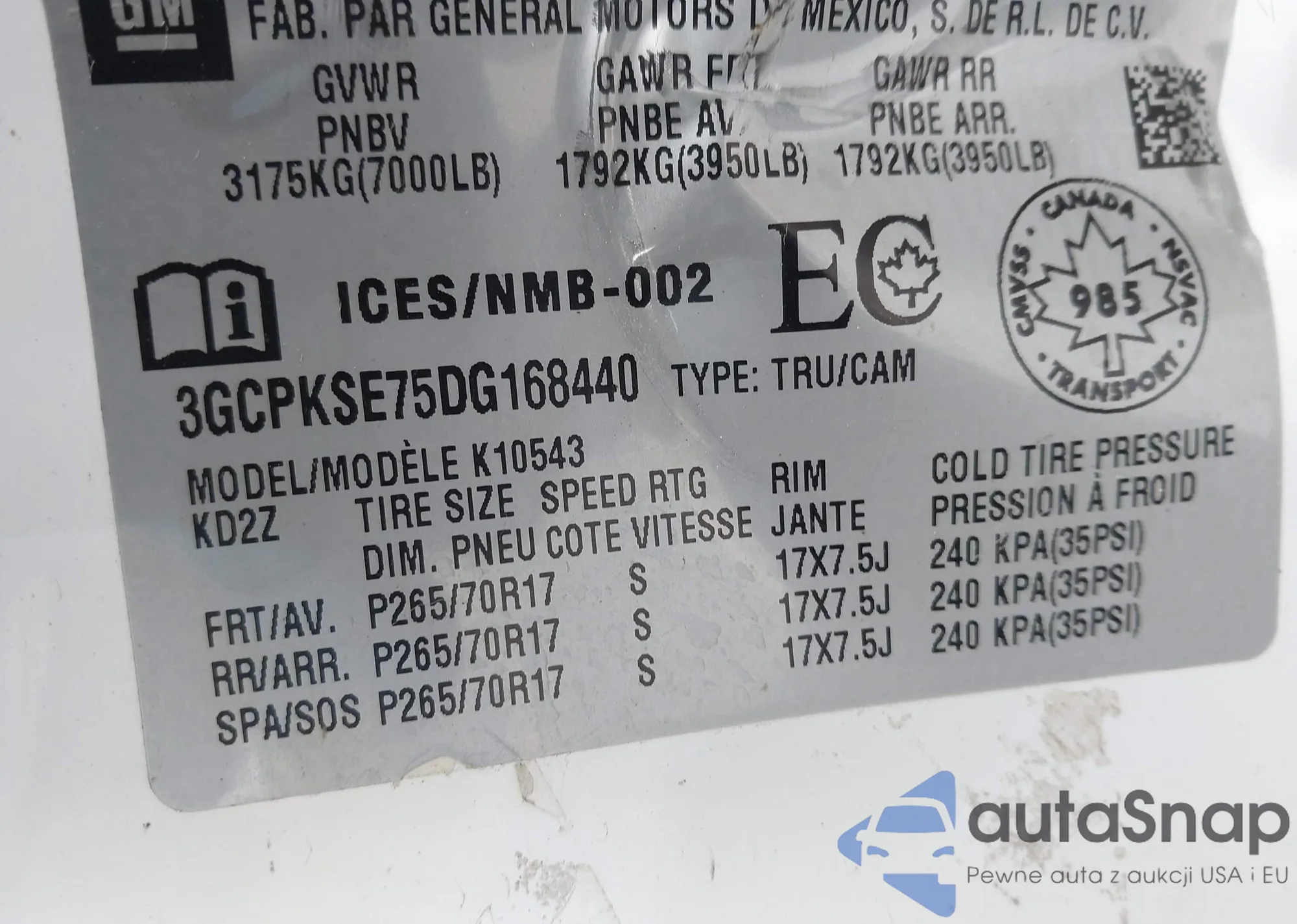 The car Chevrolet Silverado 2013 (VIN 3GCPKSE75DG168440) has not been auctioned before. The documents are clean, and the mileage matches or is below the market average. Sold by an insurance company – we recommend purchase. Delivery to the port will take approx. 6–8 weeks.