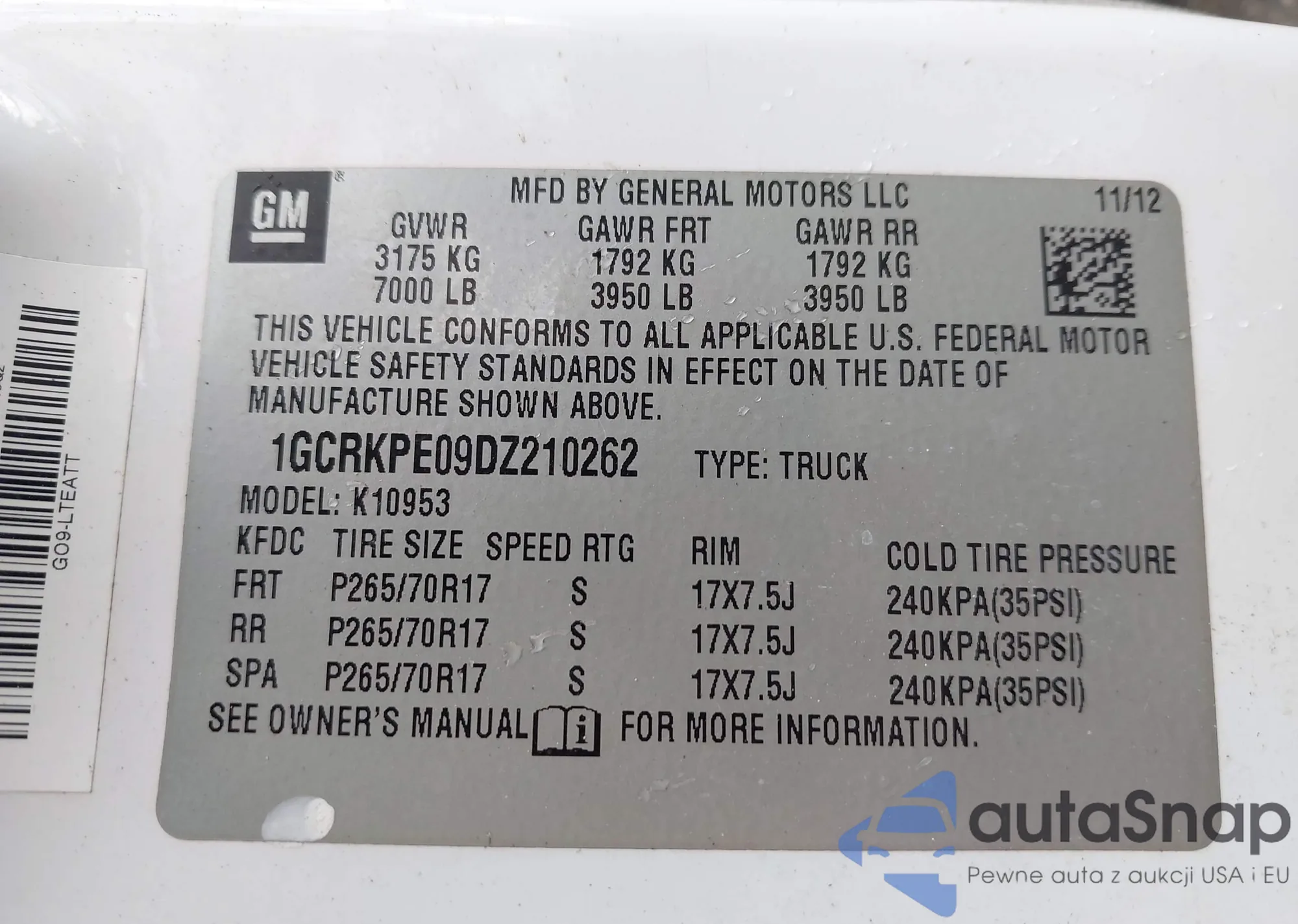 VIN: 1GCRKPE09DZ210262