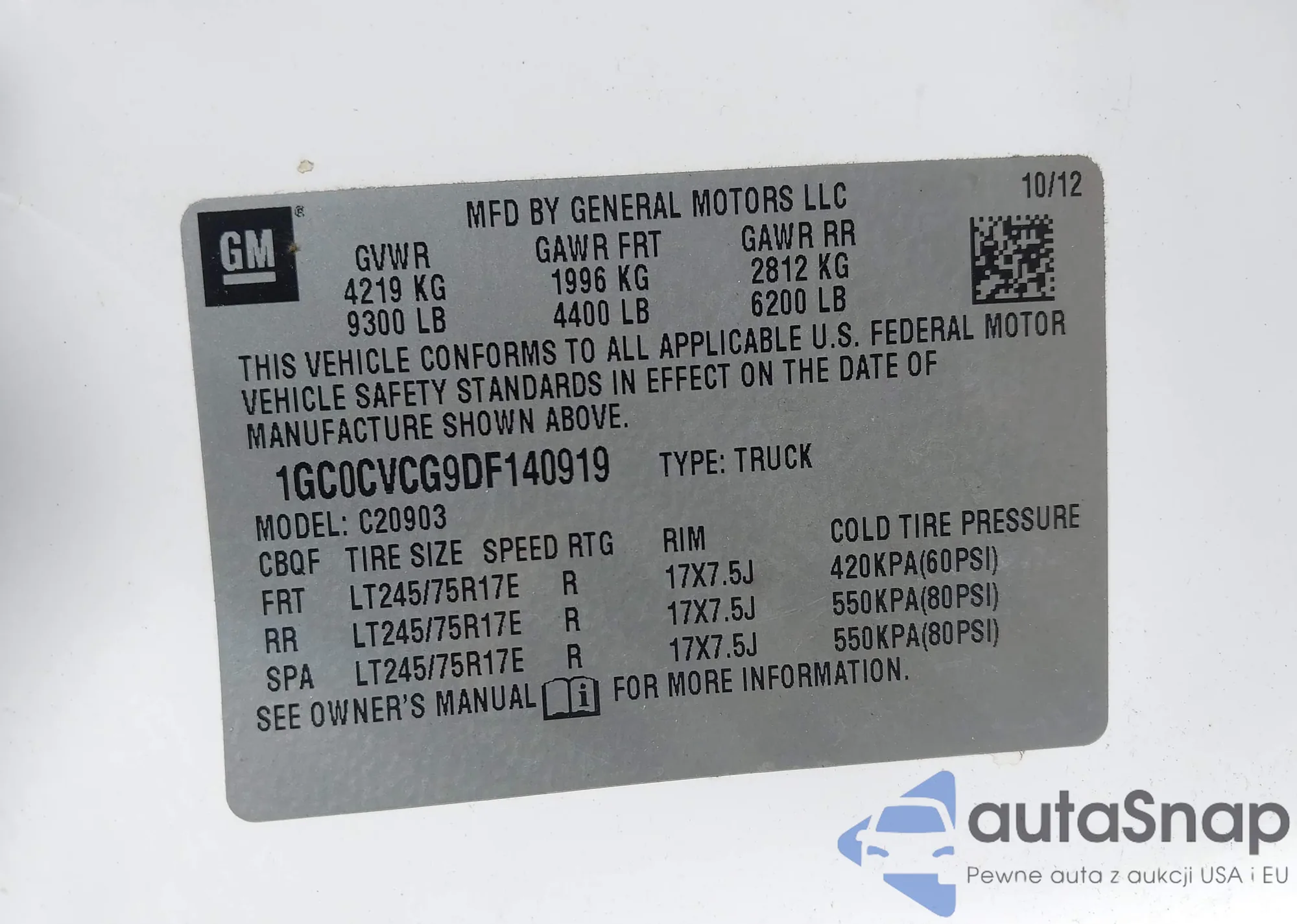 VIN: 1GC0CVCG9DF140919