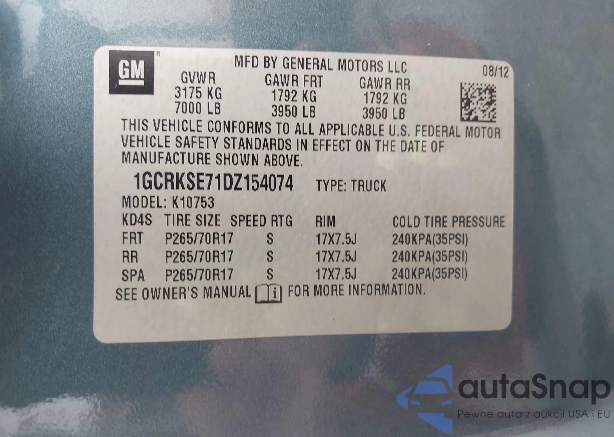 VIN: 1GCRKSE71DZ154074