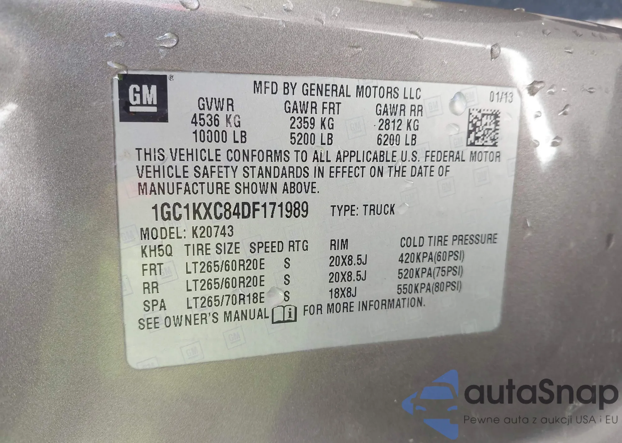 VIN: 1GC1KXC84DF171989