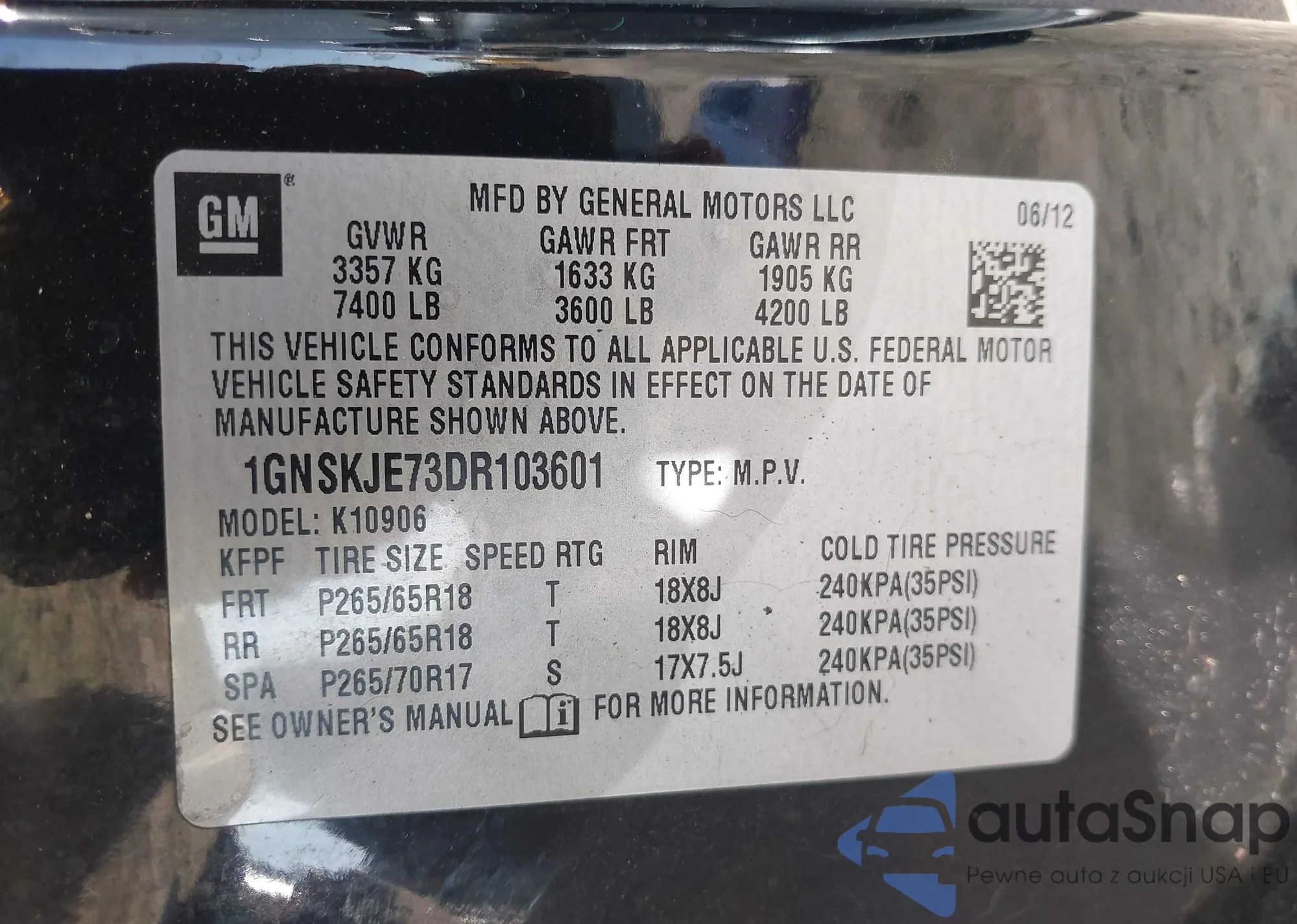 VIN: 1GNSKJE73DR103601
