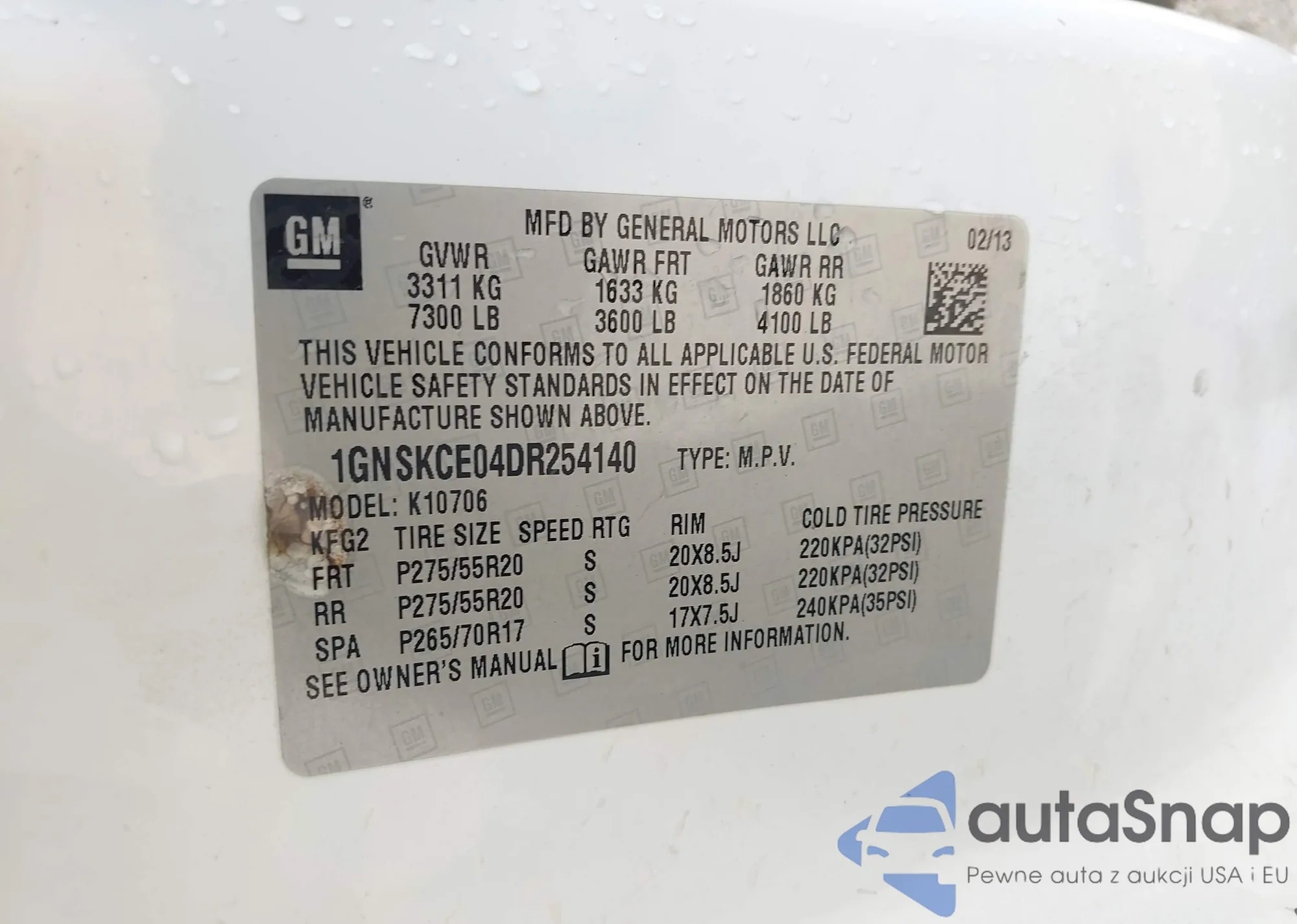 VIN: 1GNSKCE04DR254140