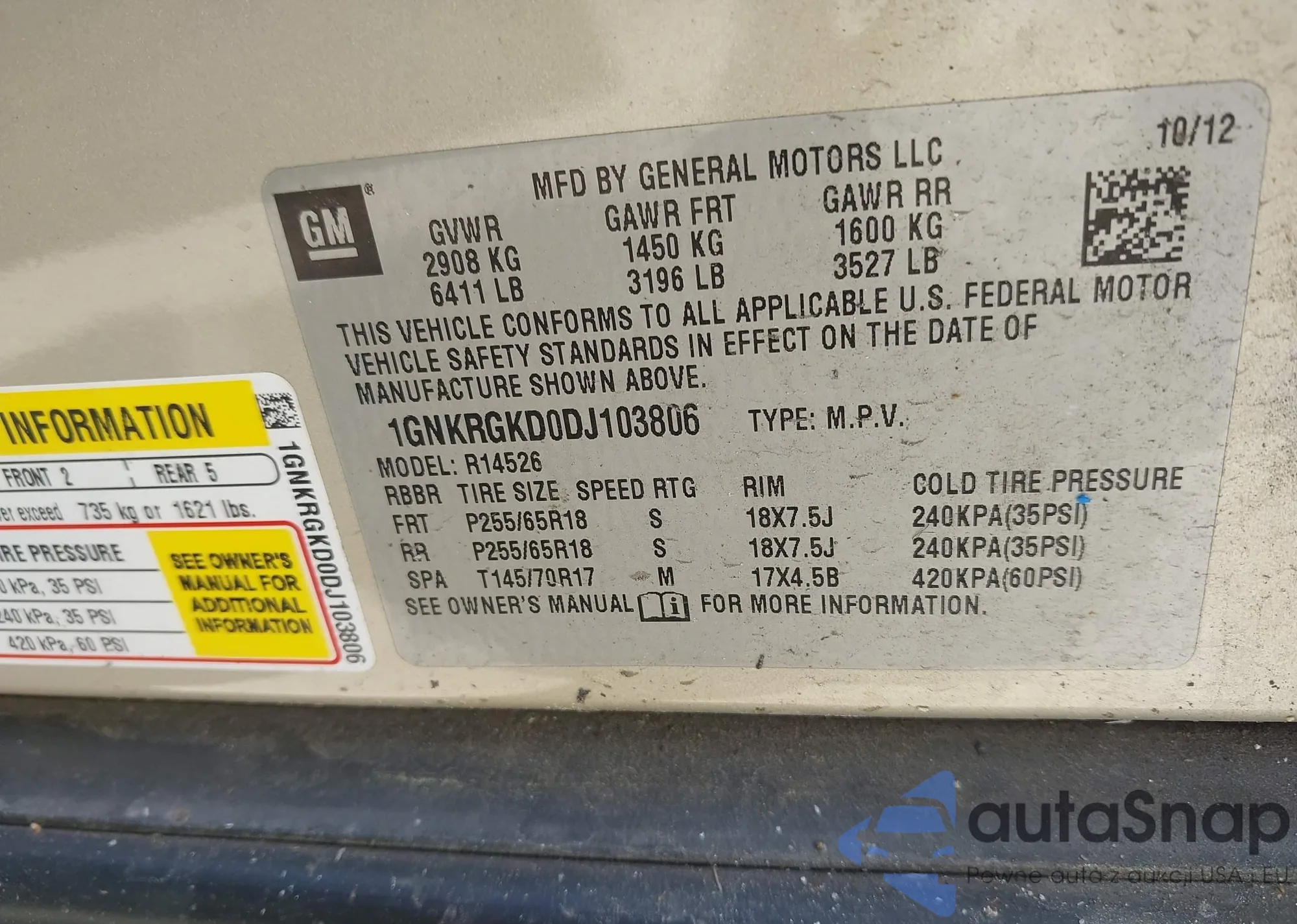 • VIN: 1GNKRGKD0DJ103806