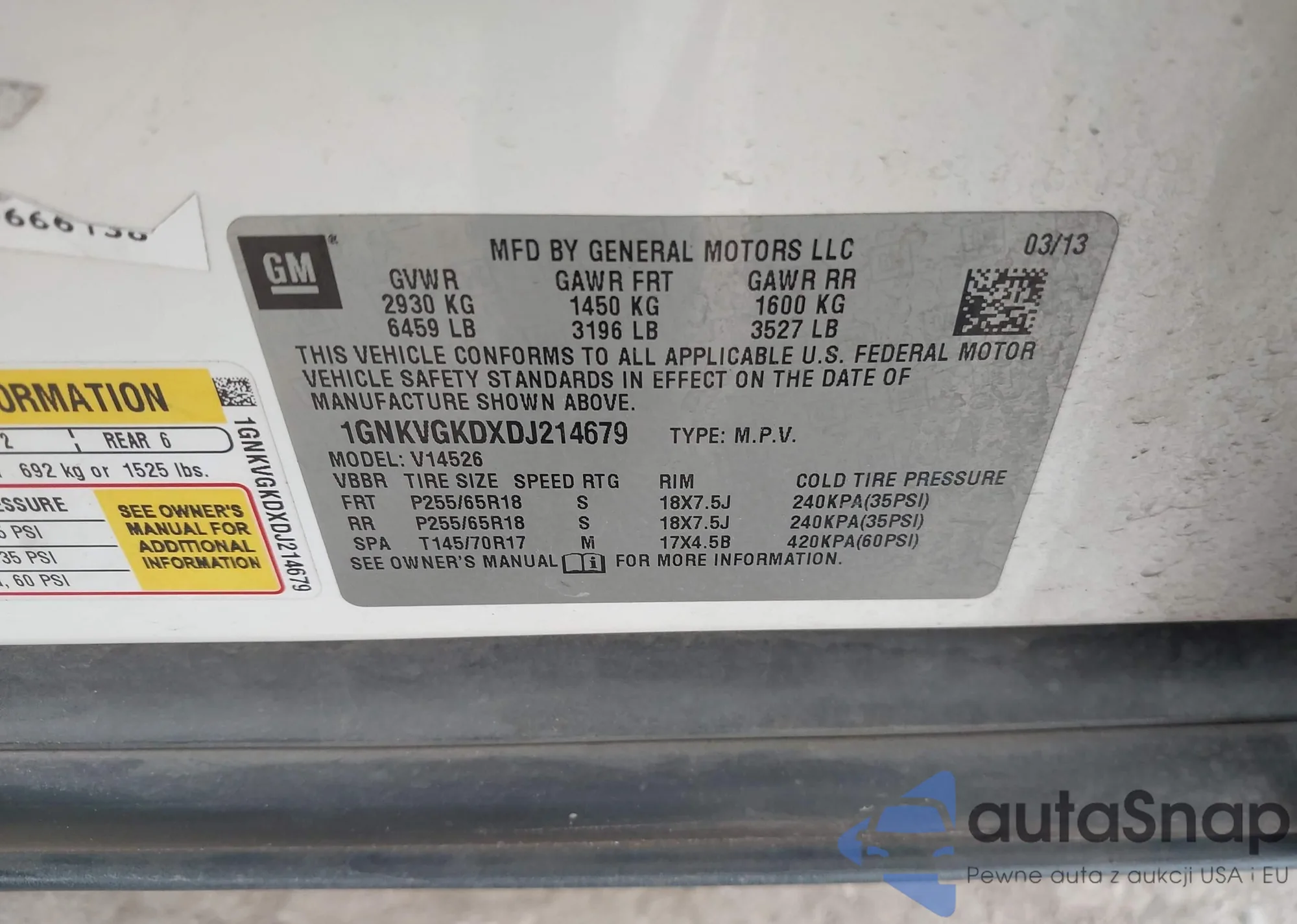 • VIN: 1GNKVGKDXDJ214679