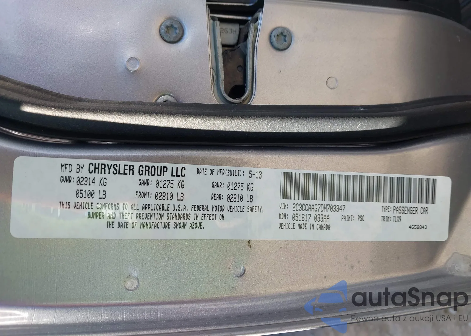 VIN: 2C3CCAAG7DH703347