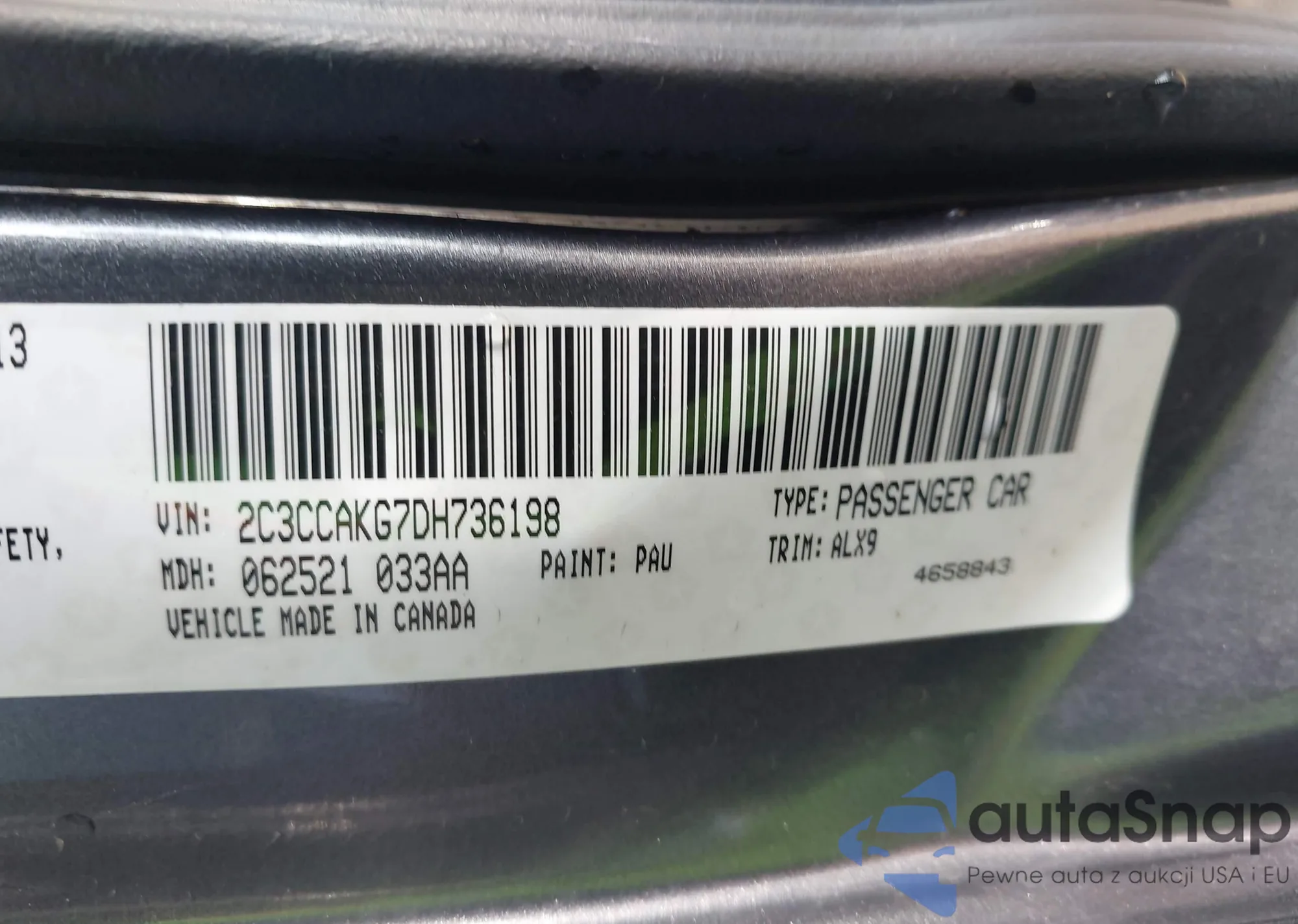 • VIN: 2C3CCAKG7DH736198
