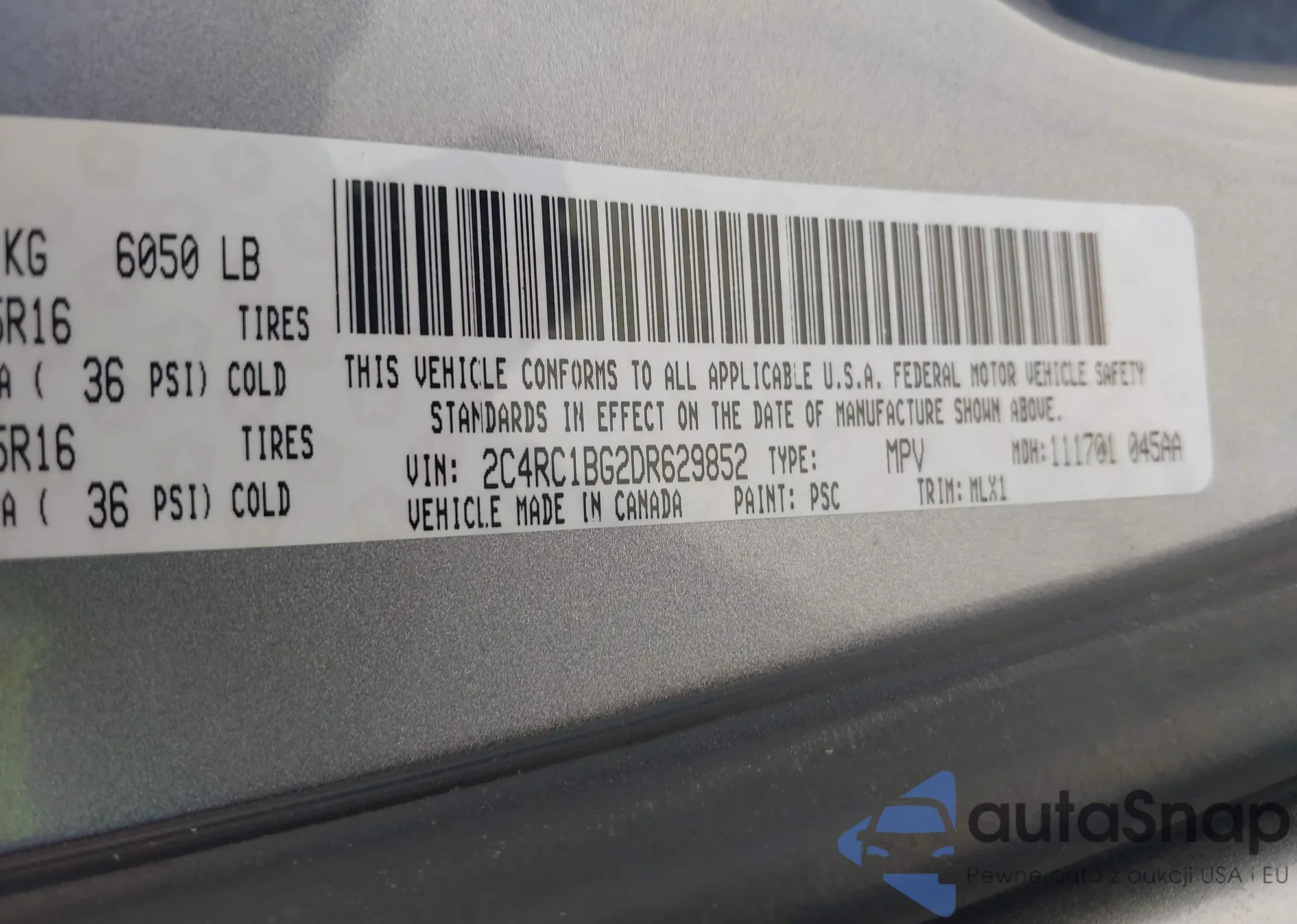The car Chrysler Town & Country 2013 (VIN 2C4RC1BG2DR629852) is sold by an unverified seller. We recommend checking the Carfax report and confirming registration possibilities before purchase.