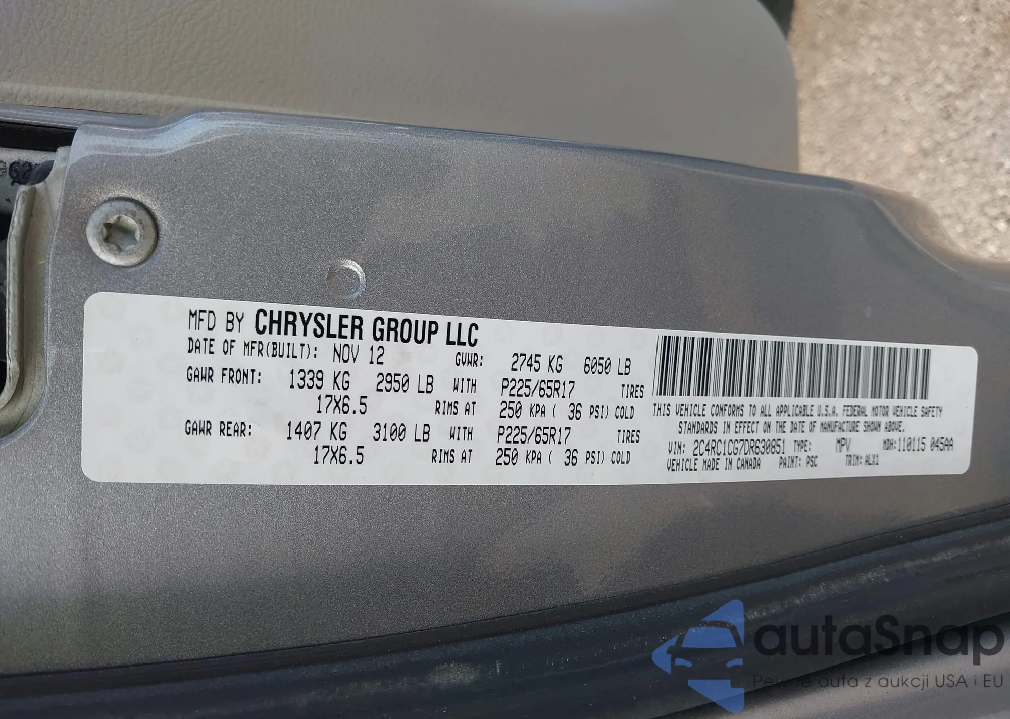 VIN: 2C4RC1CG7DR630851