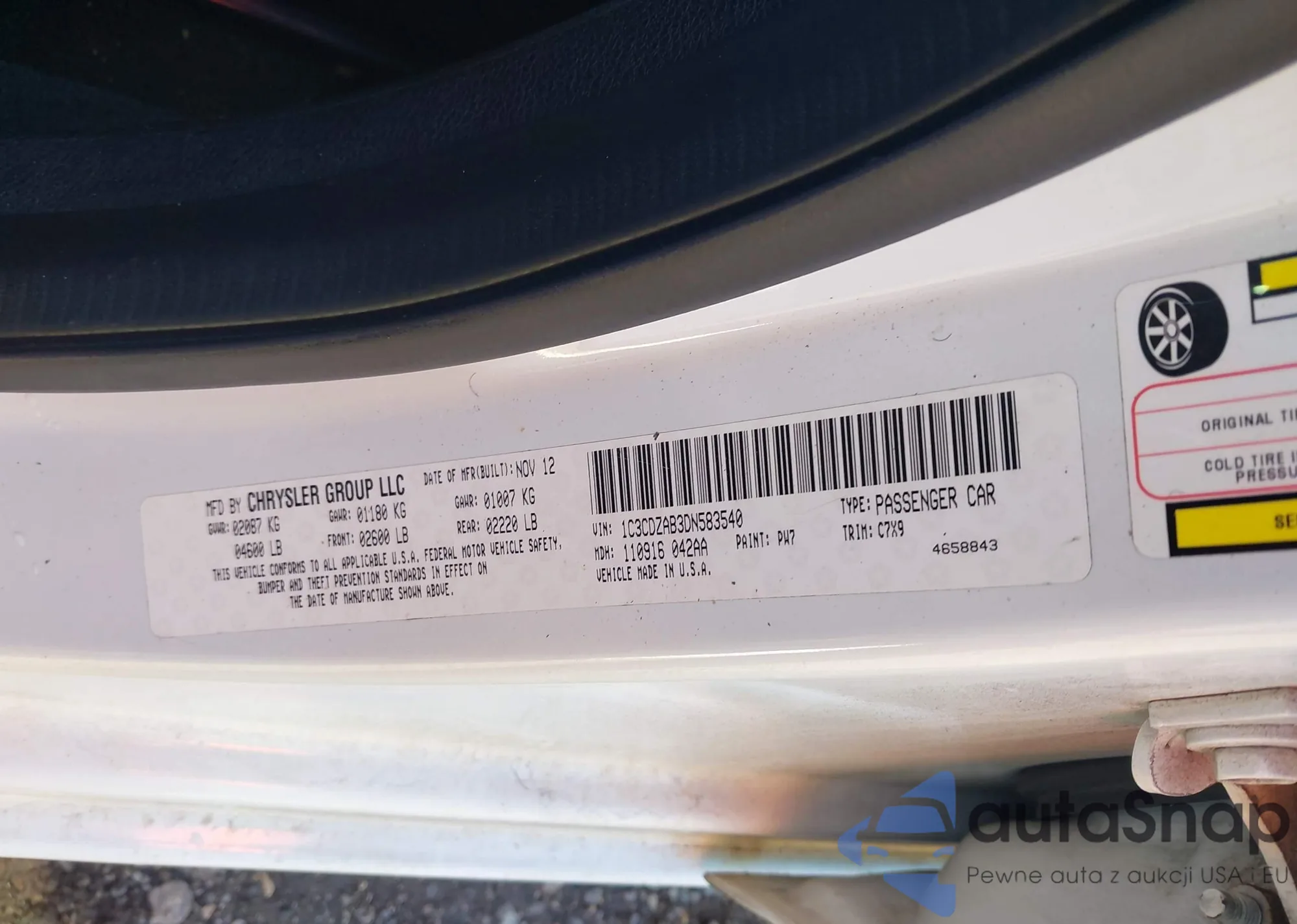 • VIN: 1C3CDZAB3DN583540