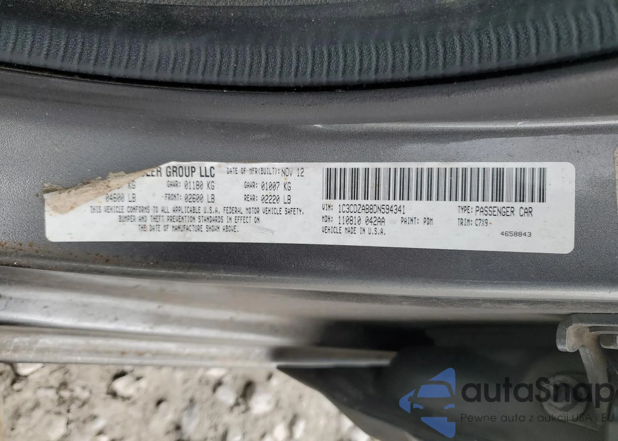 VIN: 1C3CDZAB8DN594341