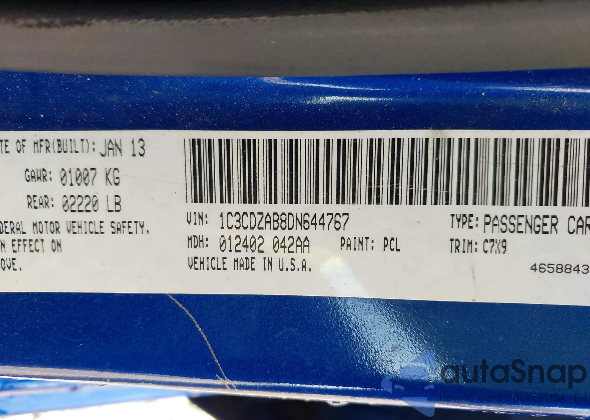 VIN: 1C3CDZAB8DN644767