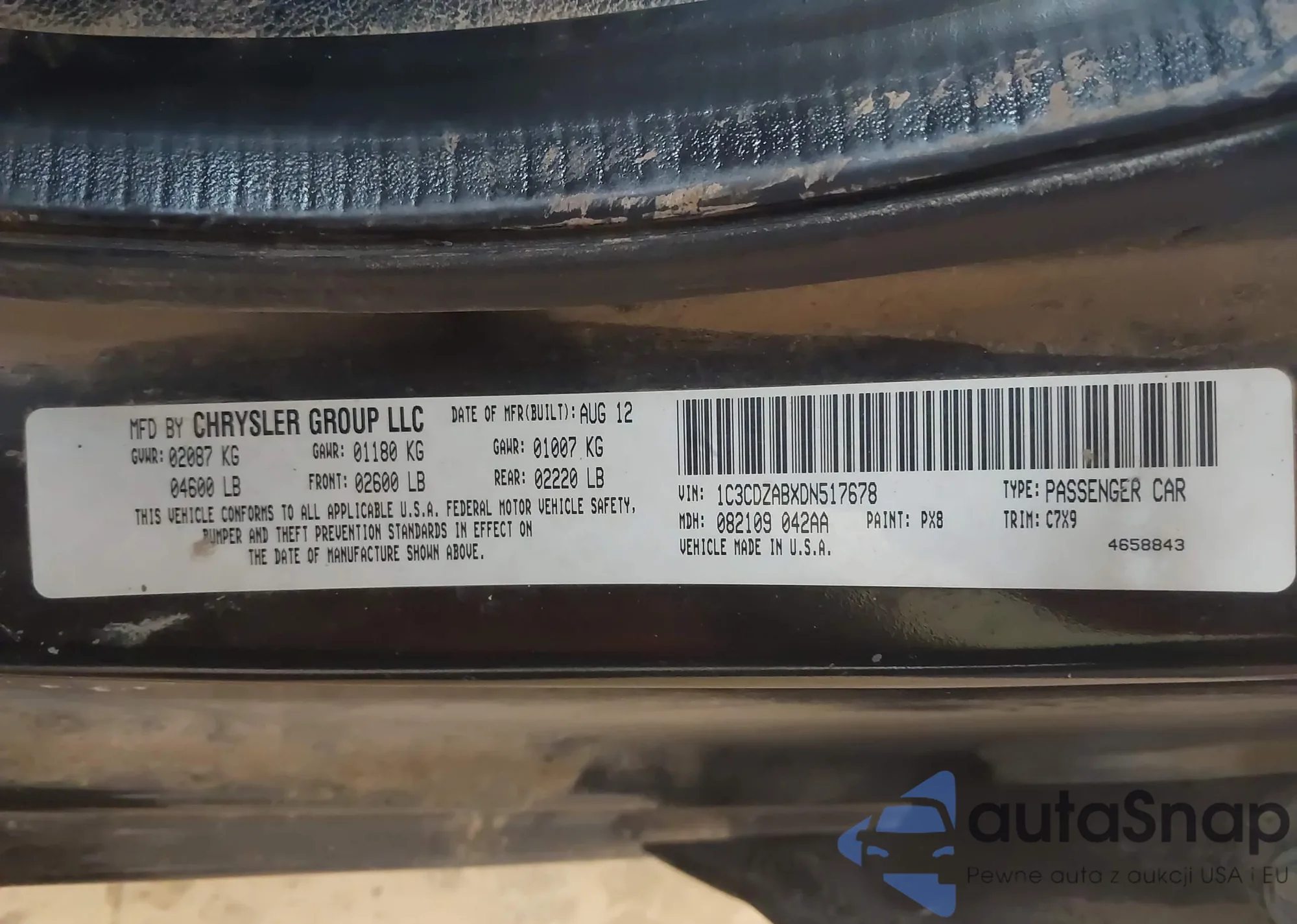 • VIN: 1C3CDZABXDN517678