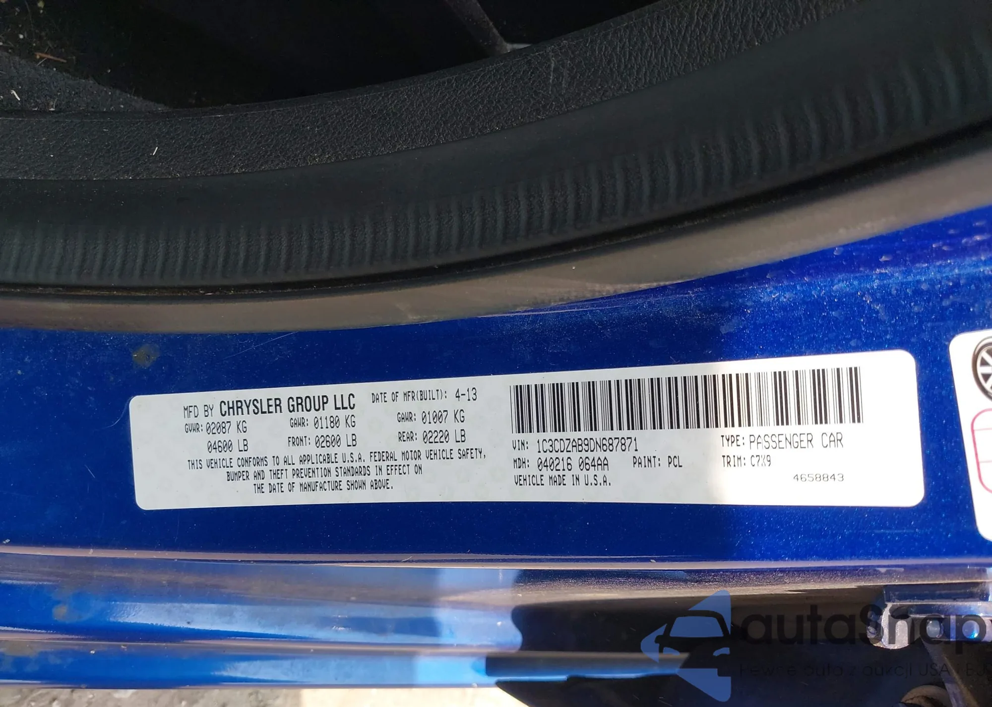 VIN: 1C3CDZAB9DN687871