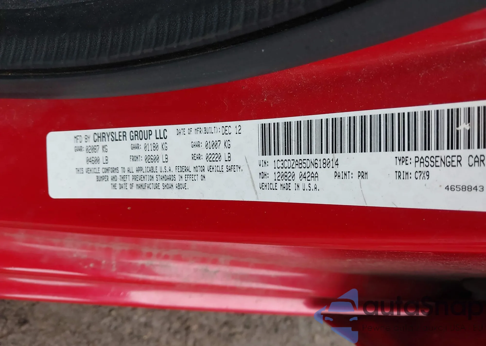 VIN: 1C3CDZAB5DN618014