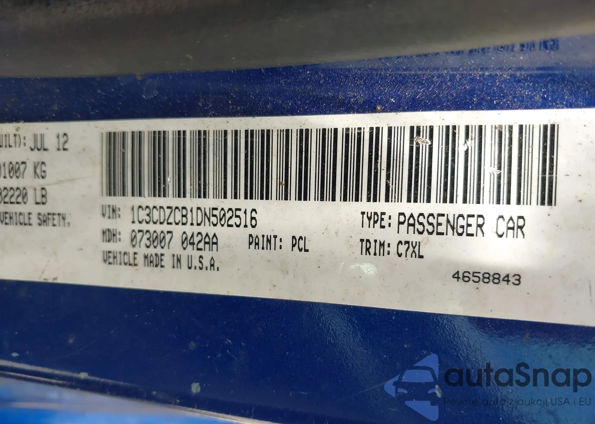 VIN: 1C3CDZCB1DN502516