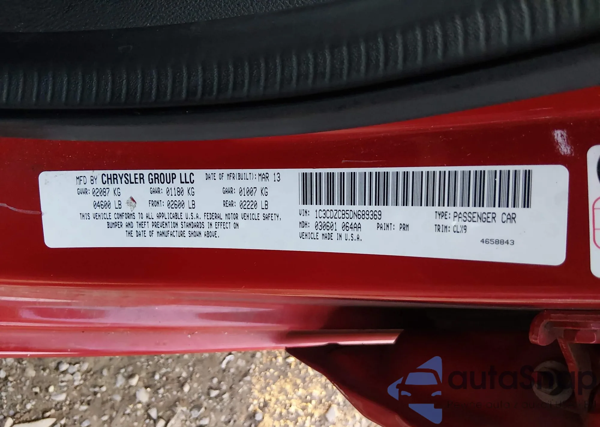 VIN: 1C3CDZCB5DN689369