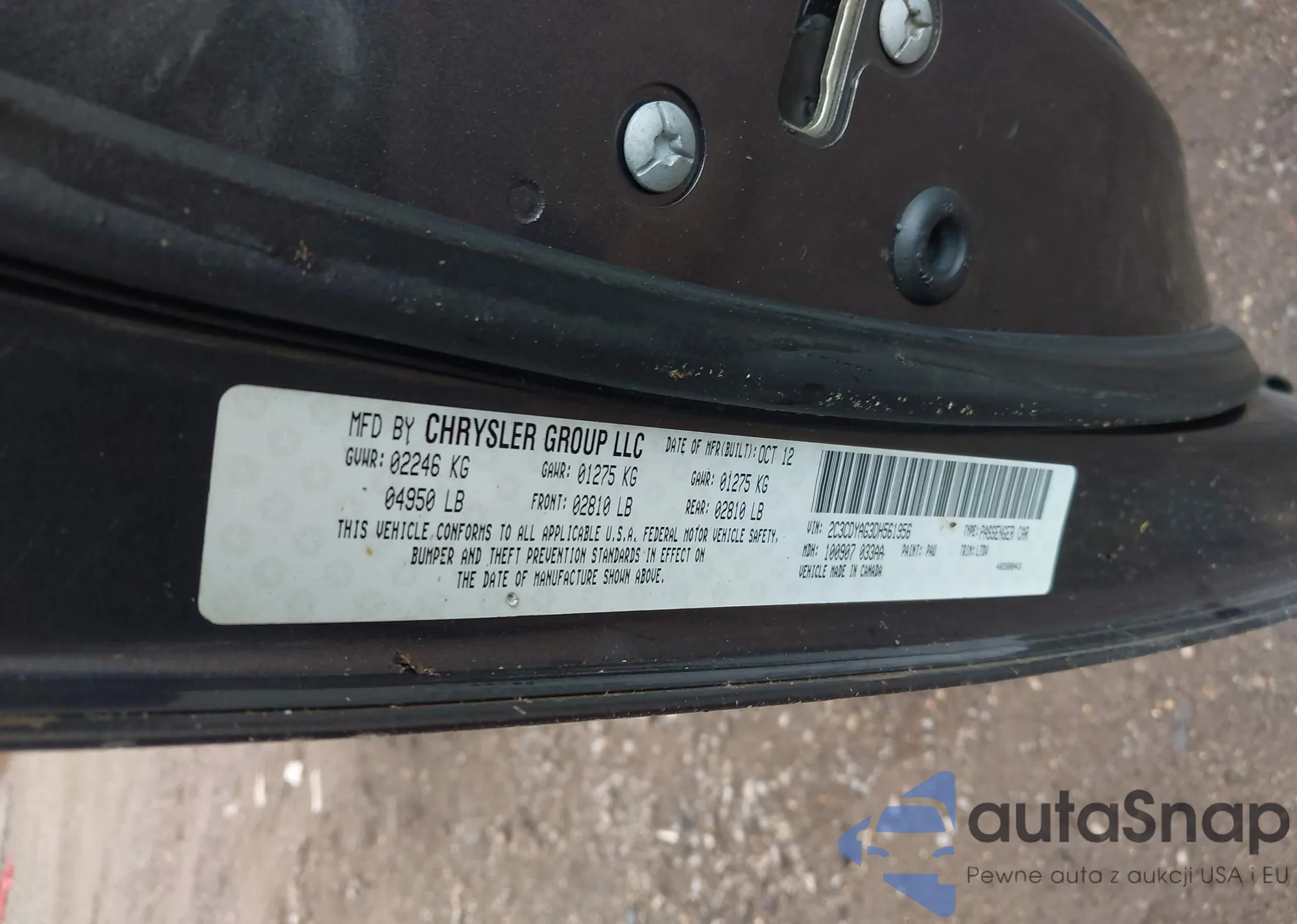 VIN: 2C3CDYAG3DH561956