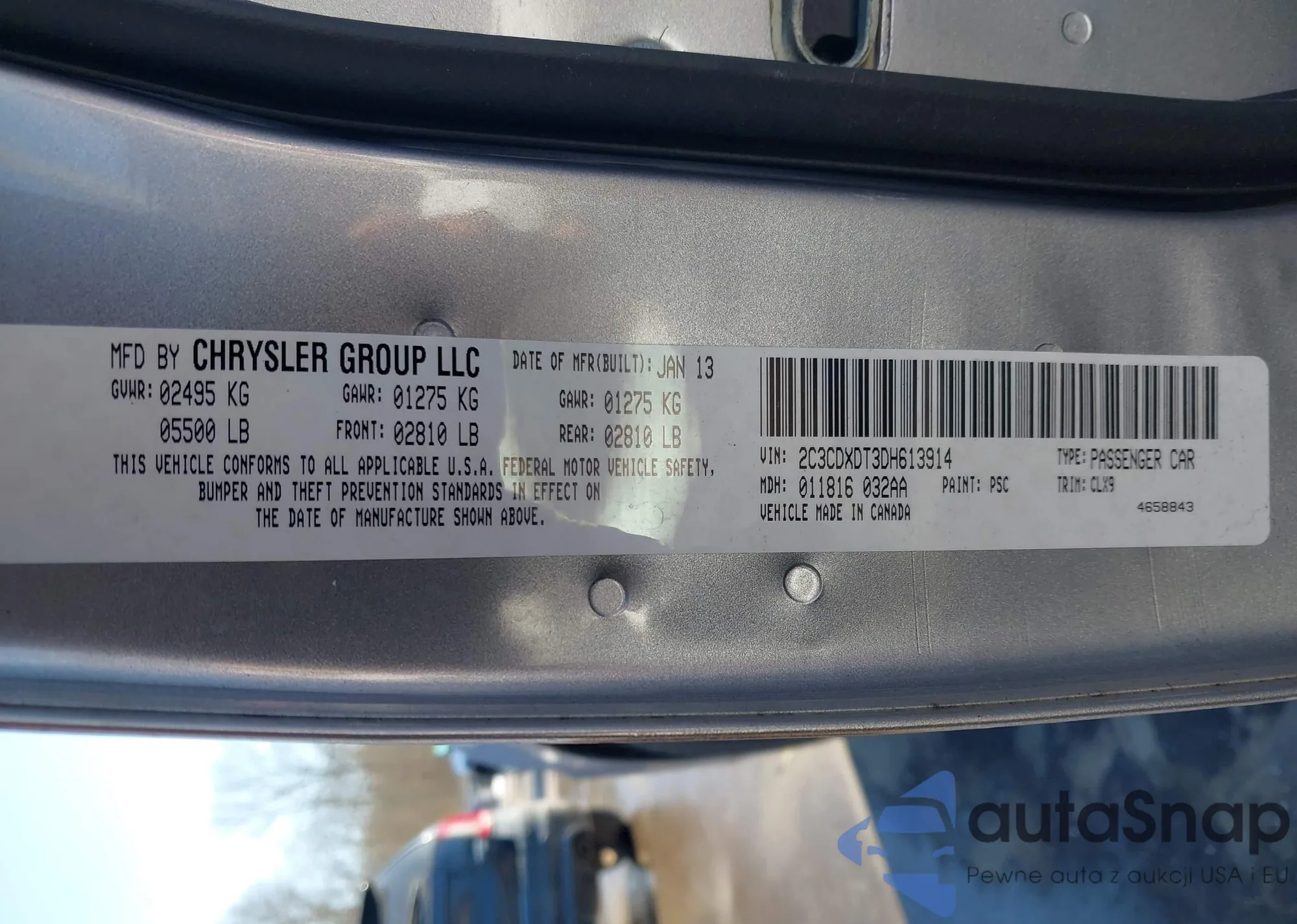 The car Dodge Charger 2013 (VIN 2C3CDXDT3DH613914) is sold by an unverified seller. We recommend checking the Carfax report and confirming registration possibilities before purchase.
