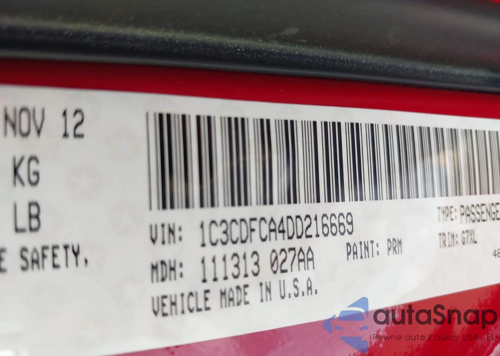 The car Dodge Dart 2013 (VIN 1C3CDFCA4DD216669) has not been auctioned before. The documents are clean, and the mileage matches or is below the market average. Sold by an insurance company – we recommend purchase. Delivery to the port will take approx. 6–8 weeks.