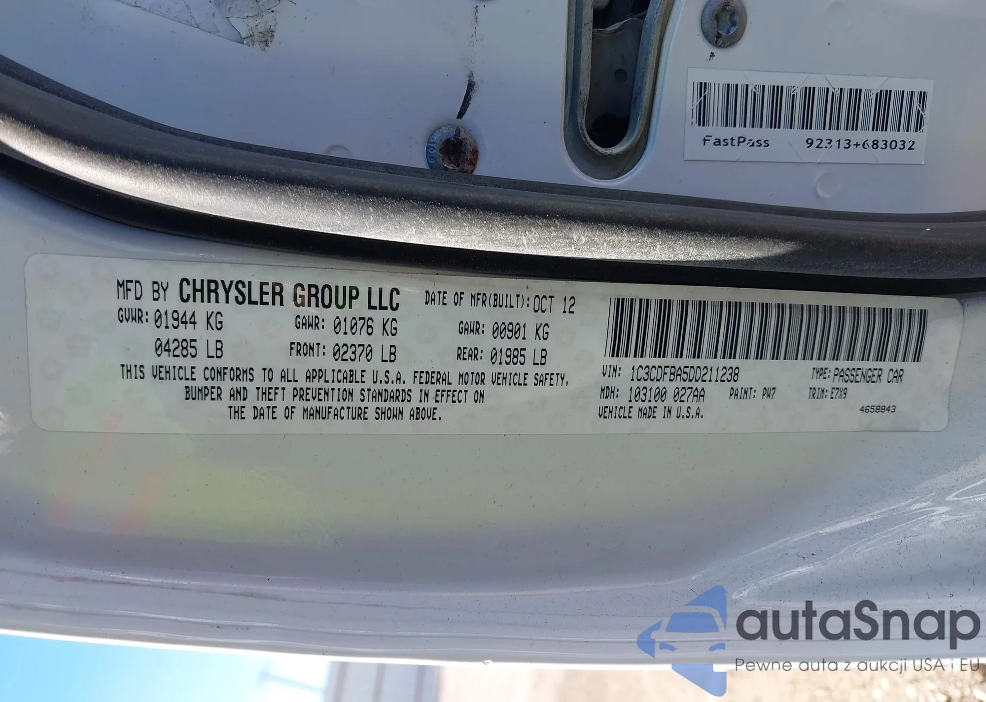 VIN: 1C3CDFBA5DD211238
