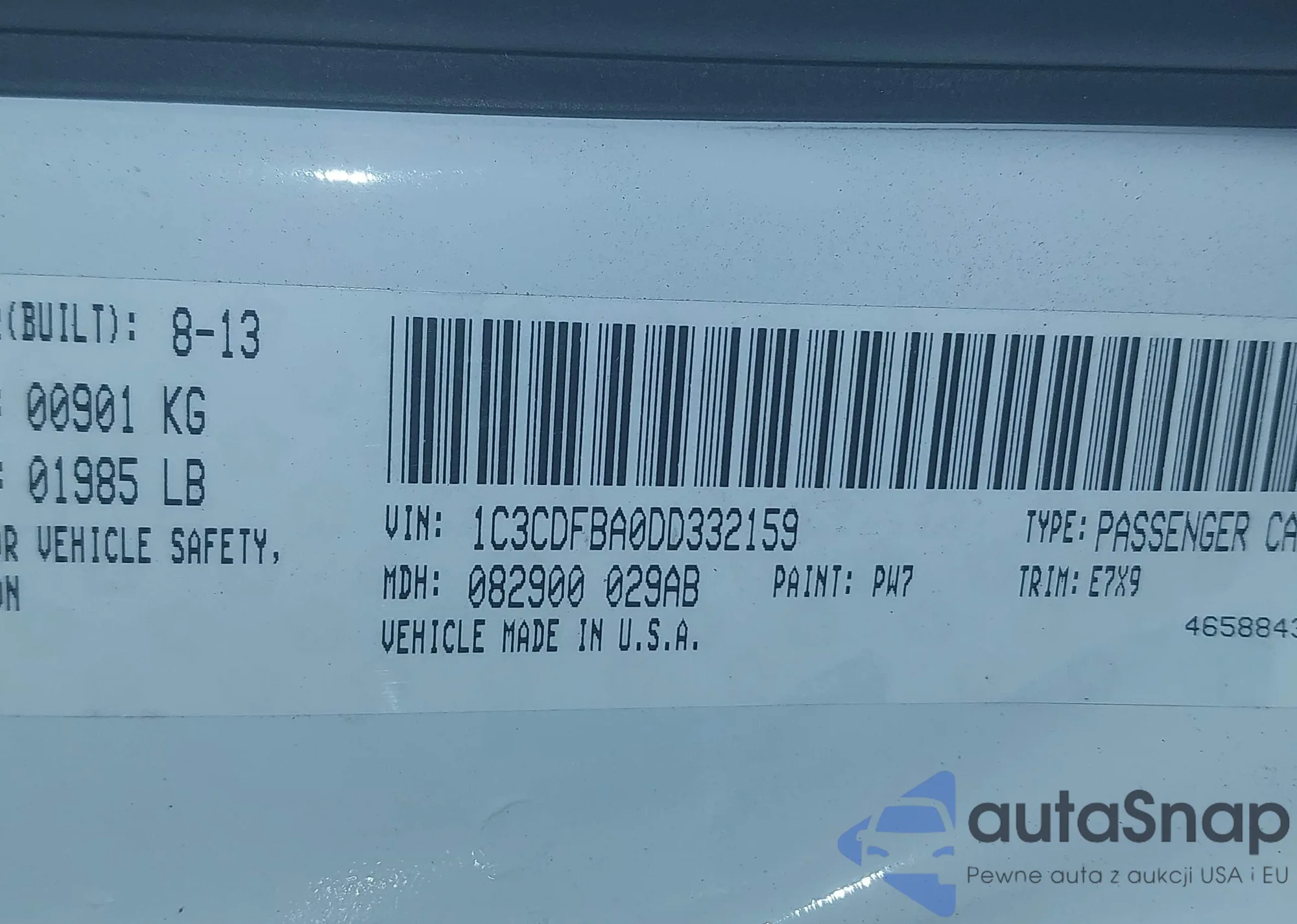 VIN: 1C3CDFBA0DD332159