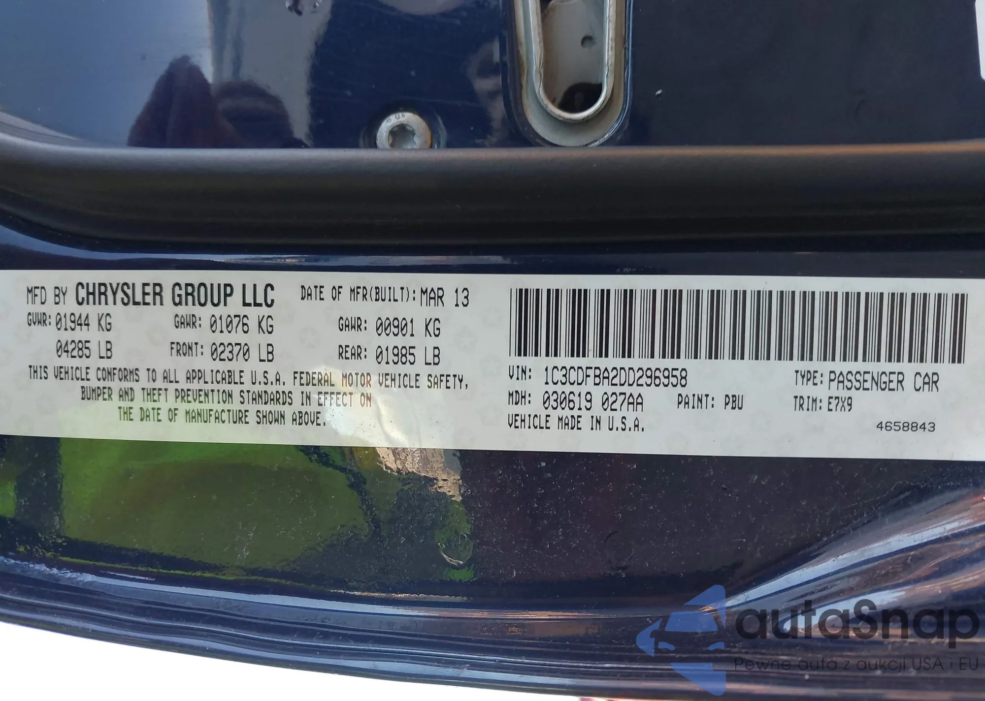 VIN: 1C3CDFBA2DD296958