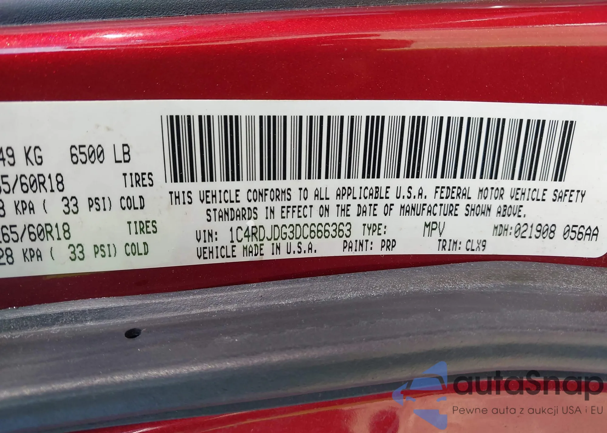 VIN: 1C4RDJDG3DC666363