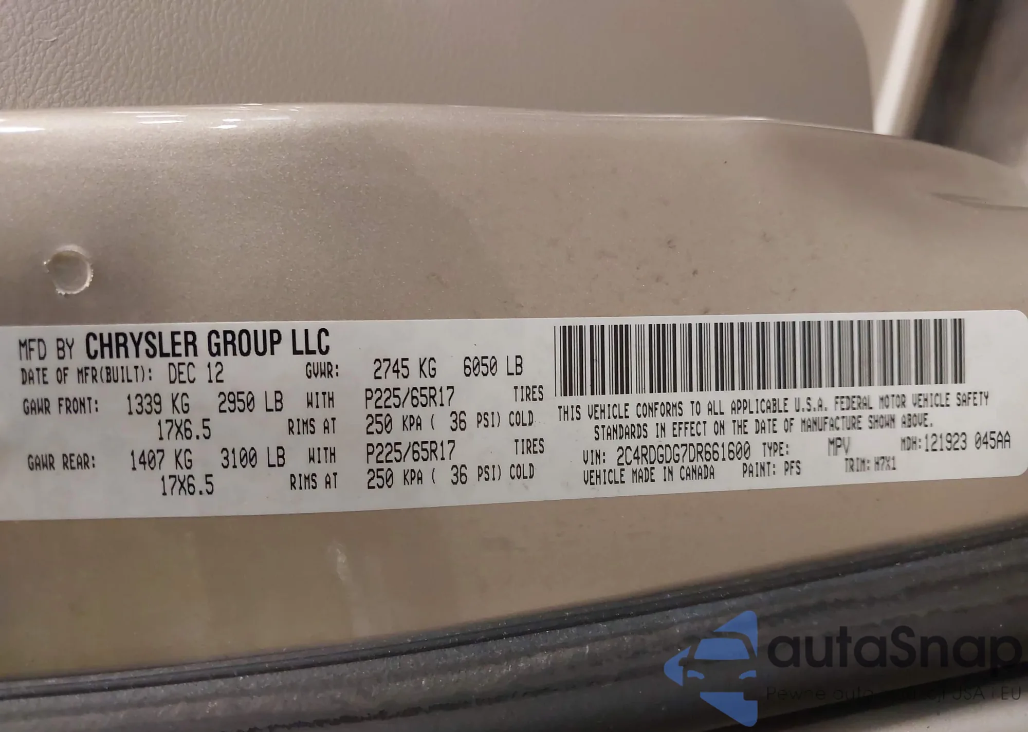 VIN: 2C4RDGDG7DR661600