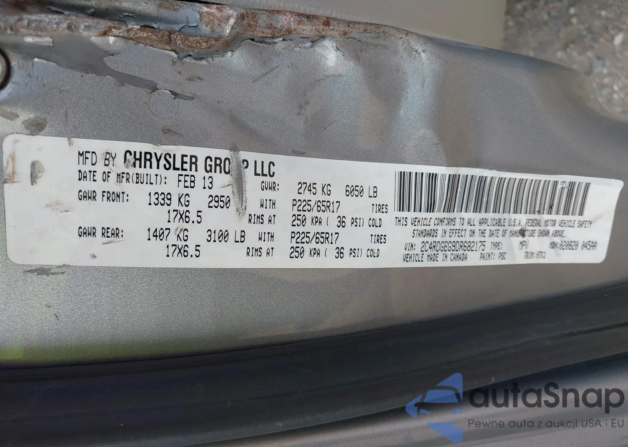 • VIN: 2C4RDGBG9DR682175