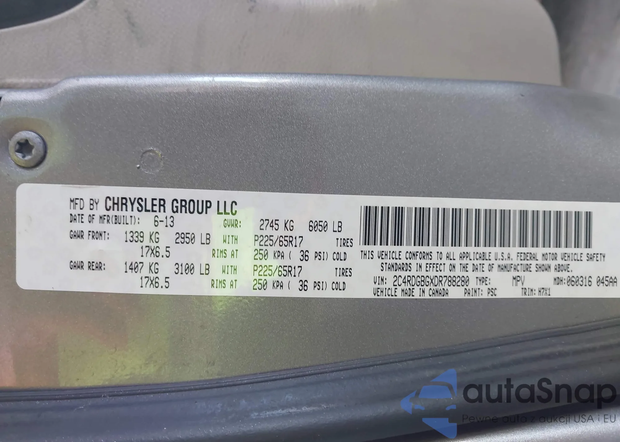 The car Dodge Caravan 2013 (VIN 2C4RDGBGXDR788280) has not been auctioned before. The documents are clean, and the mileage matches or is below the market average. Sold by an insurance company – we recommend purchase. Delivery to the port will take approx. 6–8 weeks.