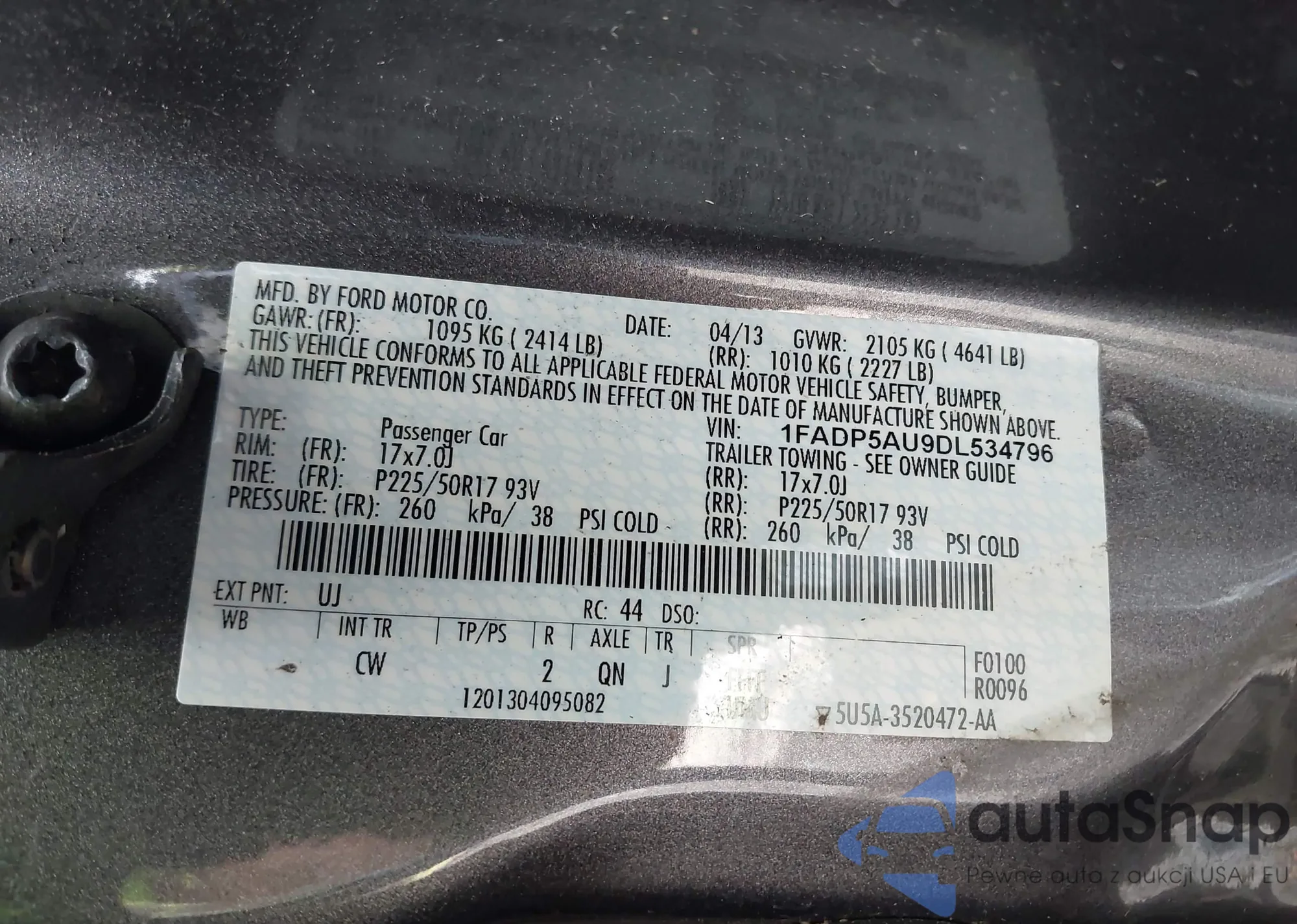 VIN: 1FADP5AU9DL534796