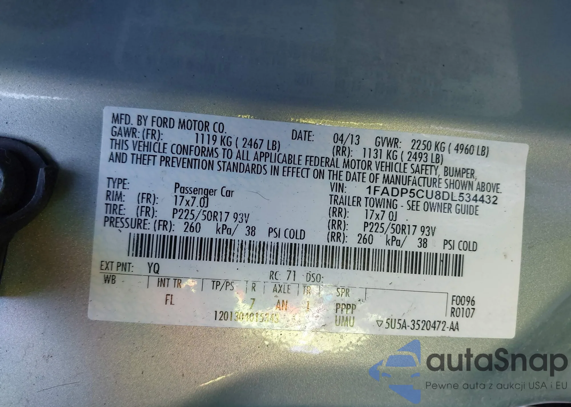 VIN: 1FADP5CU8DL534432
