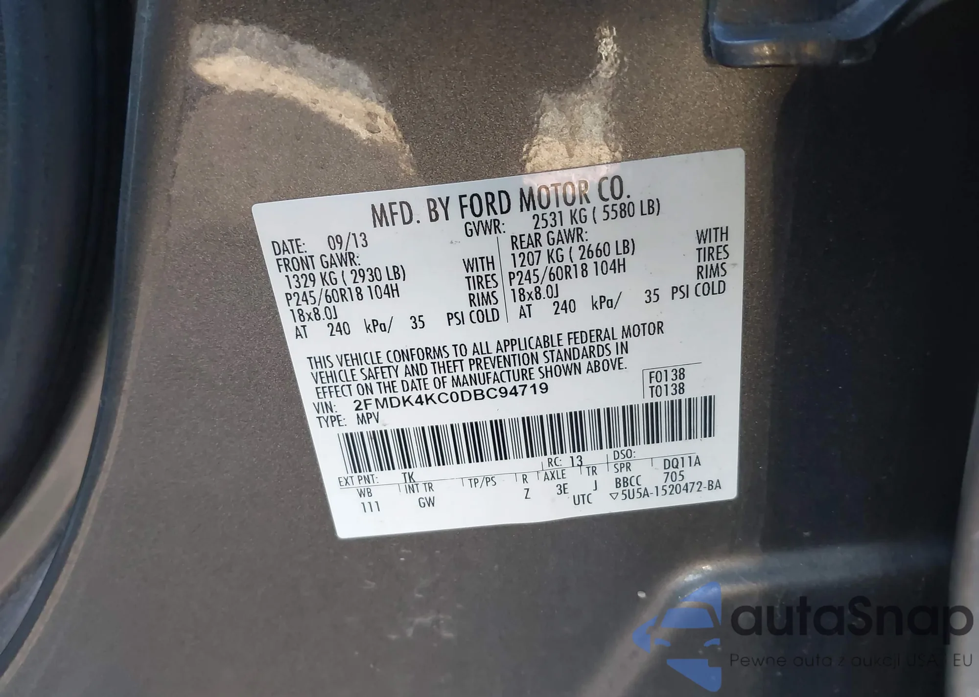 VIN: 2FMDK4KC0DBC94719