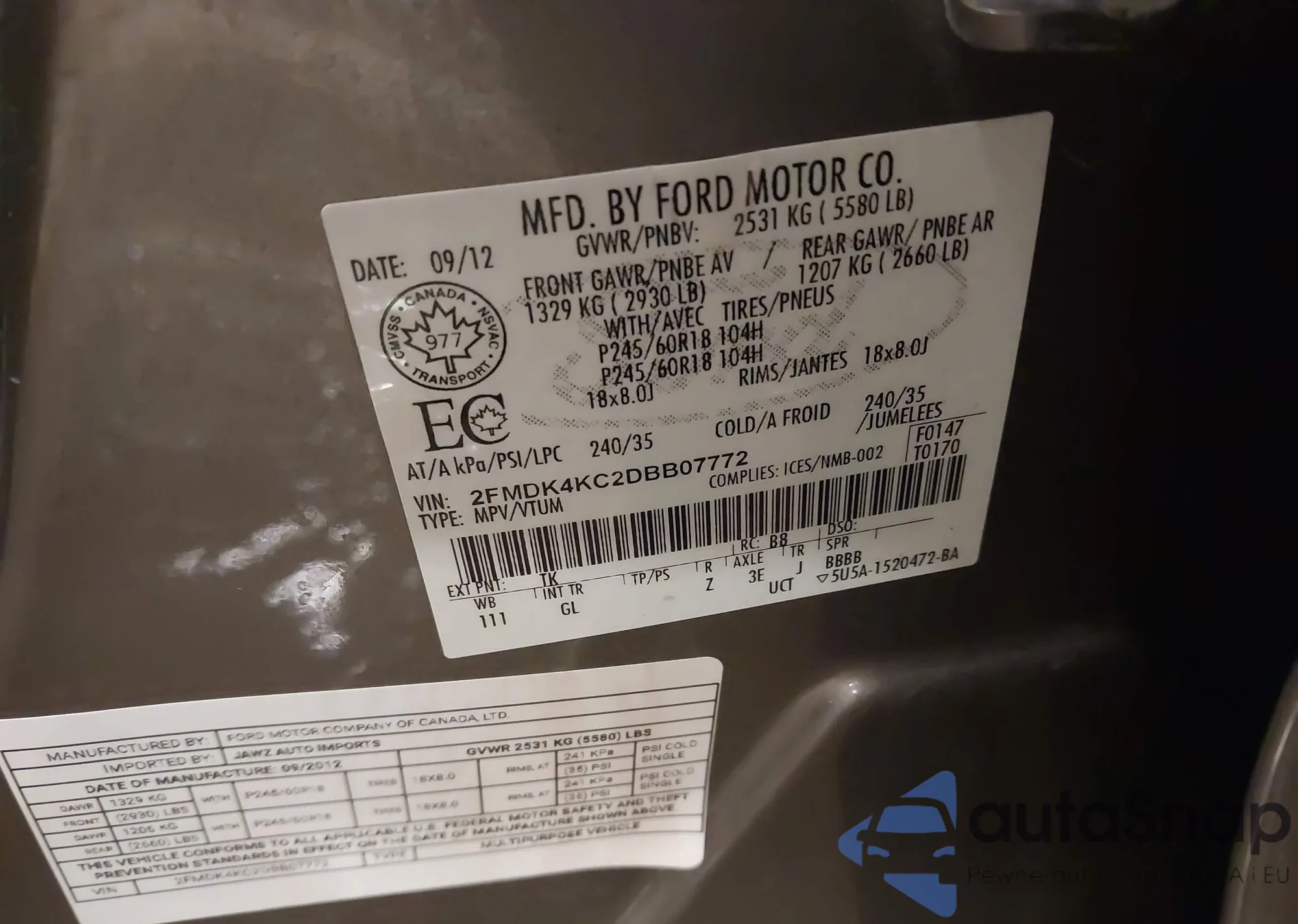 VIN: 2FMDK4KC2DBB07772