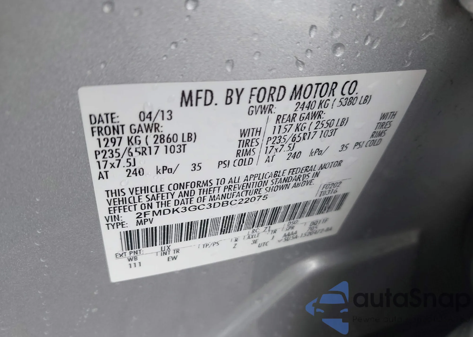 VIN: 2FMDK3GC3DBC22075